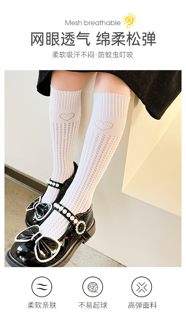 여자 양말 여름 얇은 메쉬 어린이 튜브 양말 사랑 어린 소녀 송아지 양말 아기 공주 스타킹