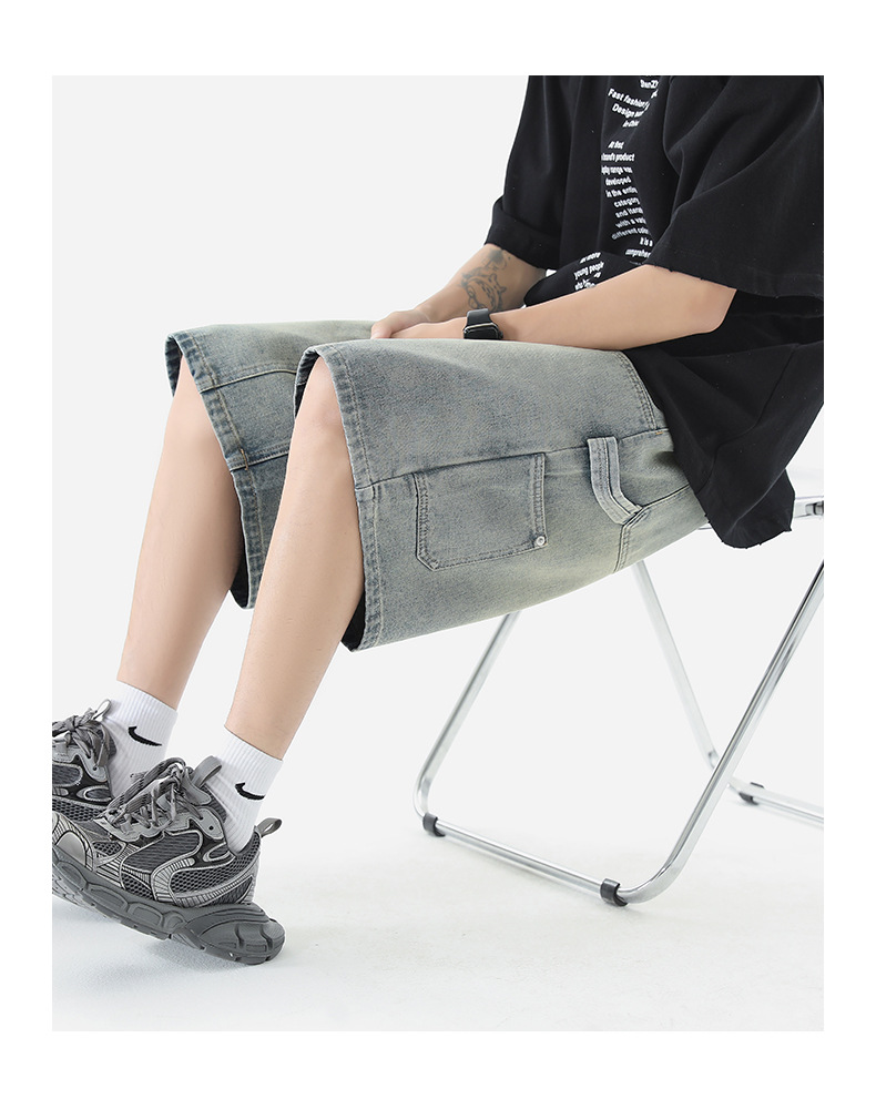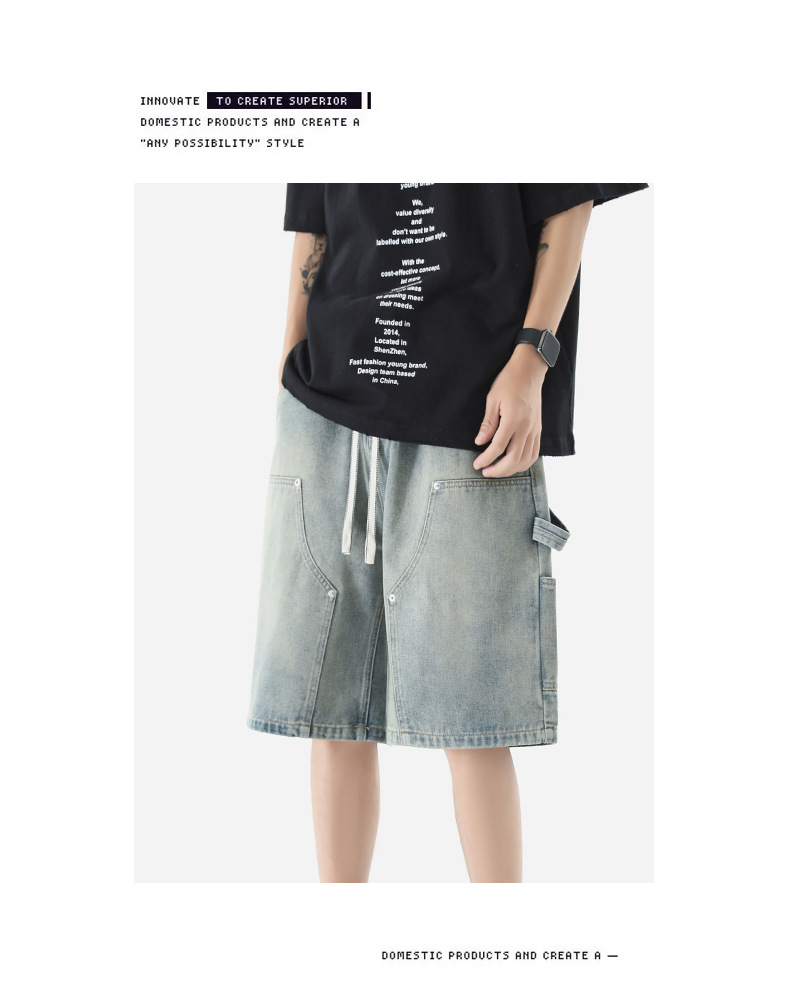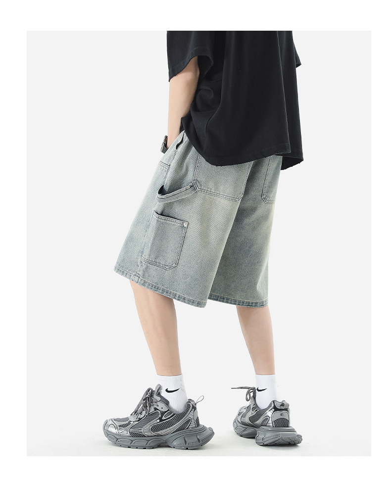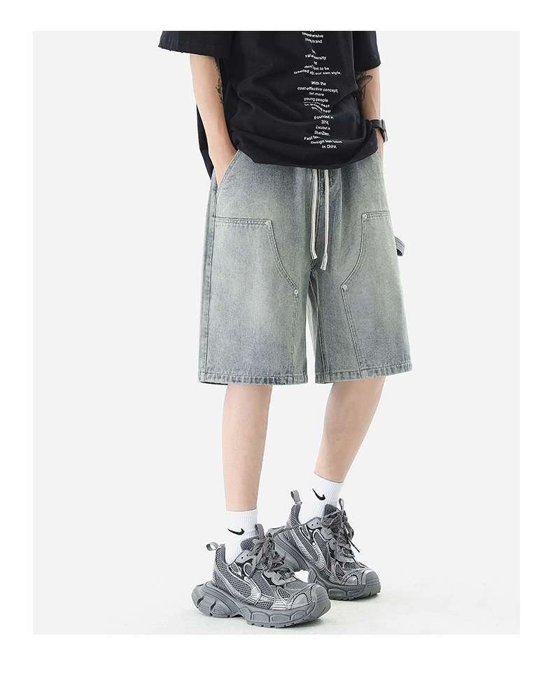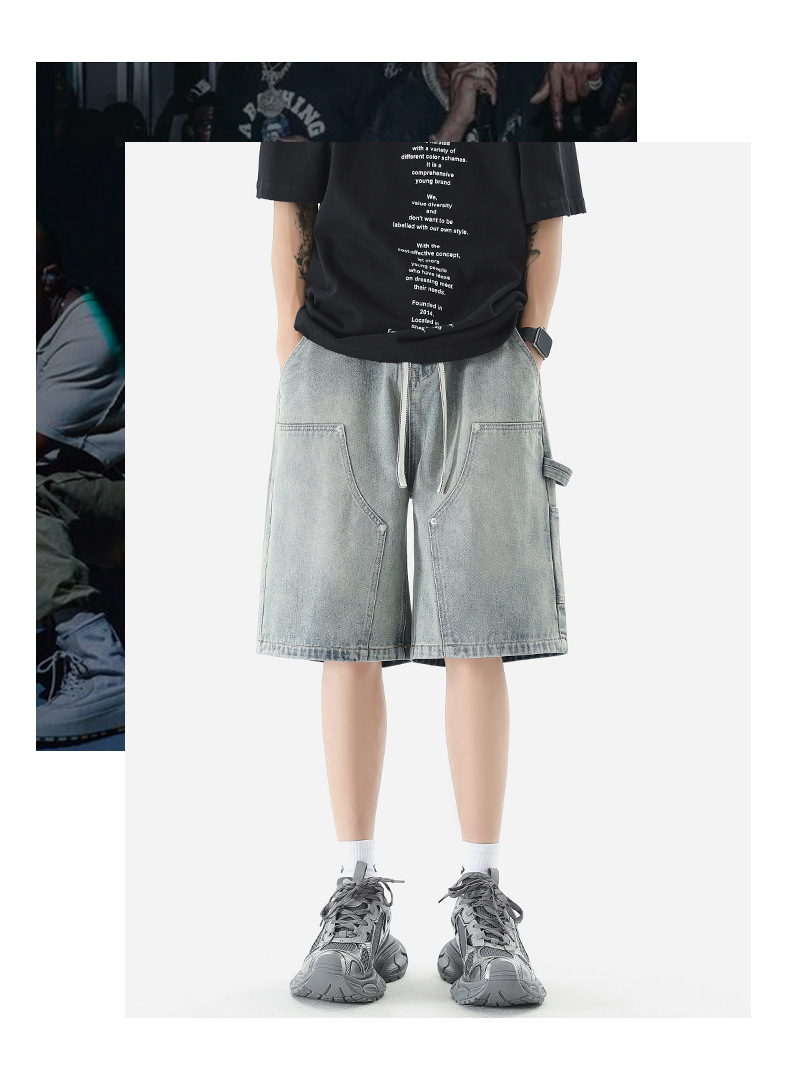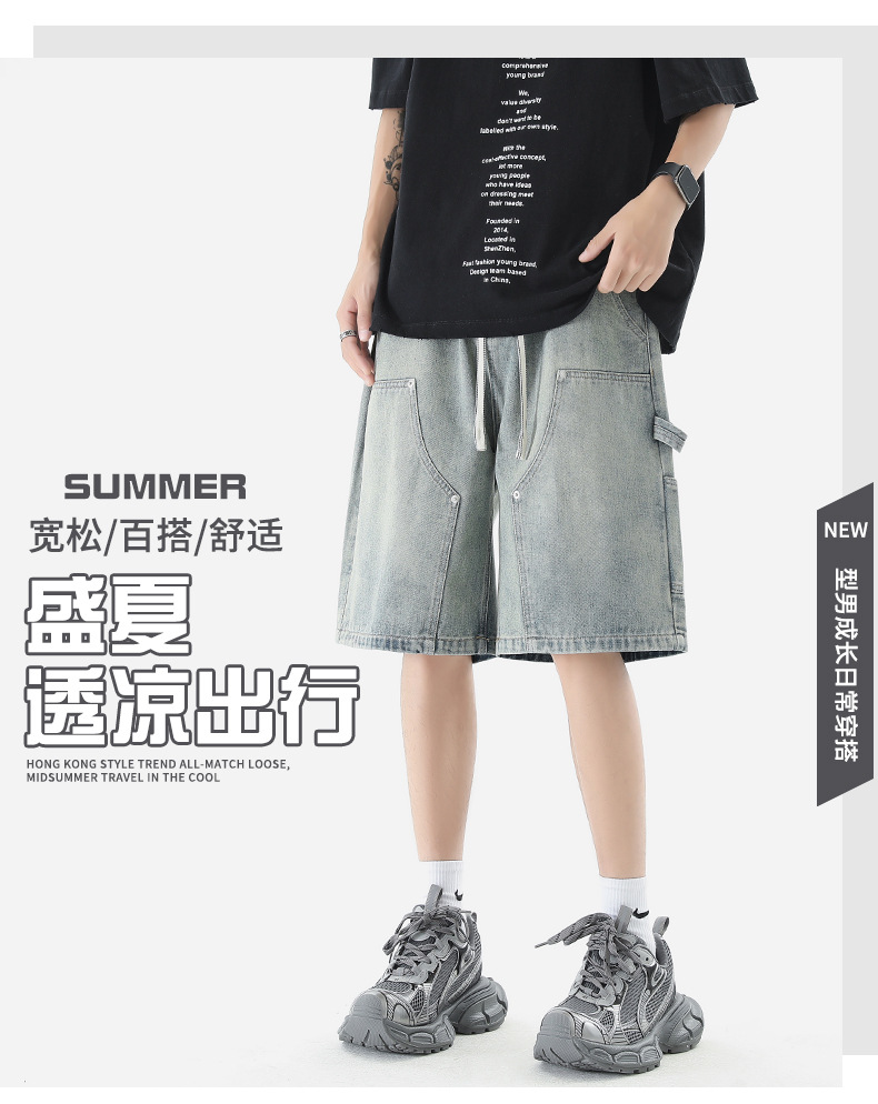 LKTM 남자의 # 여름 로깅 툴링 데님 반바지 남자의 in 아메리칸 스타일 느슨한 스트레이트 캐주얼 하프 팬츠스토어 가기