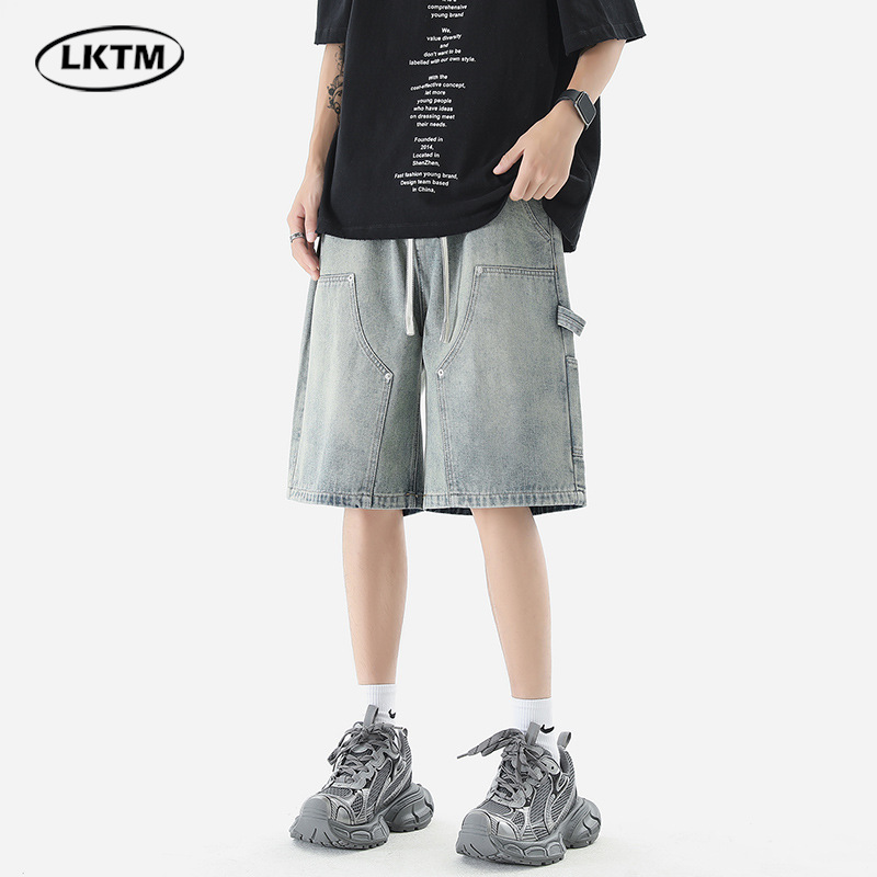 LKTM 남자의 # 여름 로깅 툴링 데님 반바지 남자의 in 아메리칸 스타일 느슨한 스트레이트 캐주얼 하프 팬츠