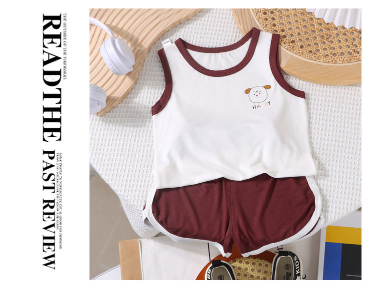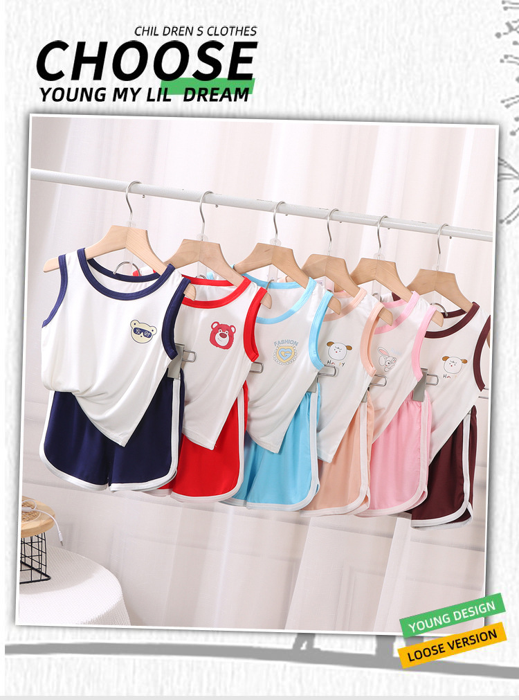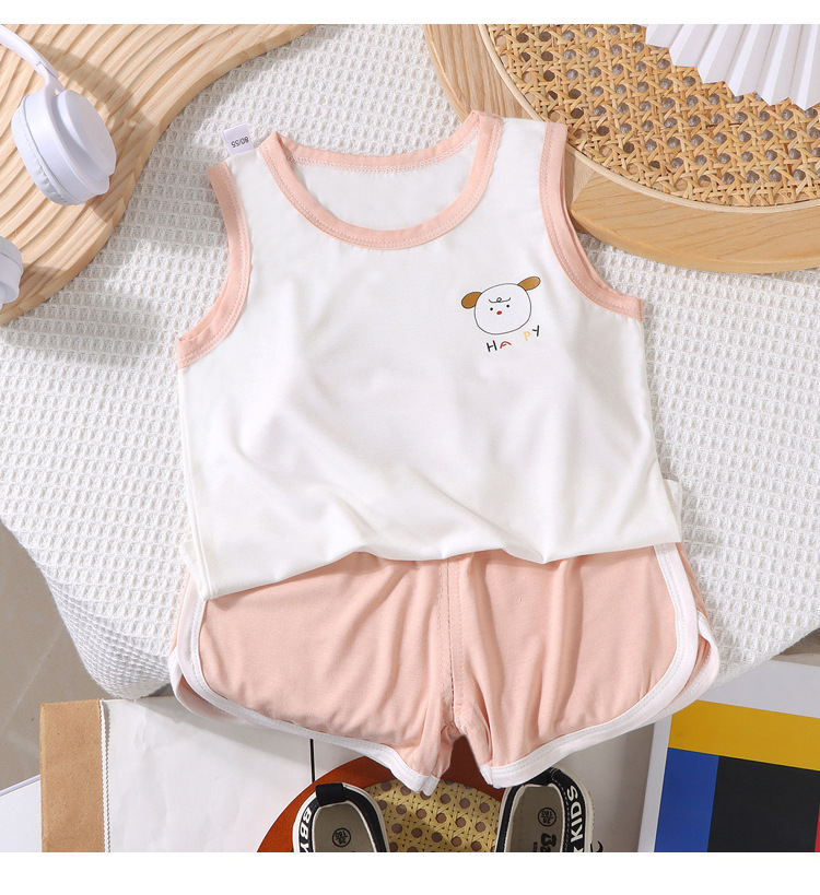 여름 얇은 민소매 에어컨이 설치된 아동용 클래스 아동용 모달 조끼 세트 세트 꼭 맞는 홈웨어