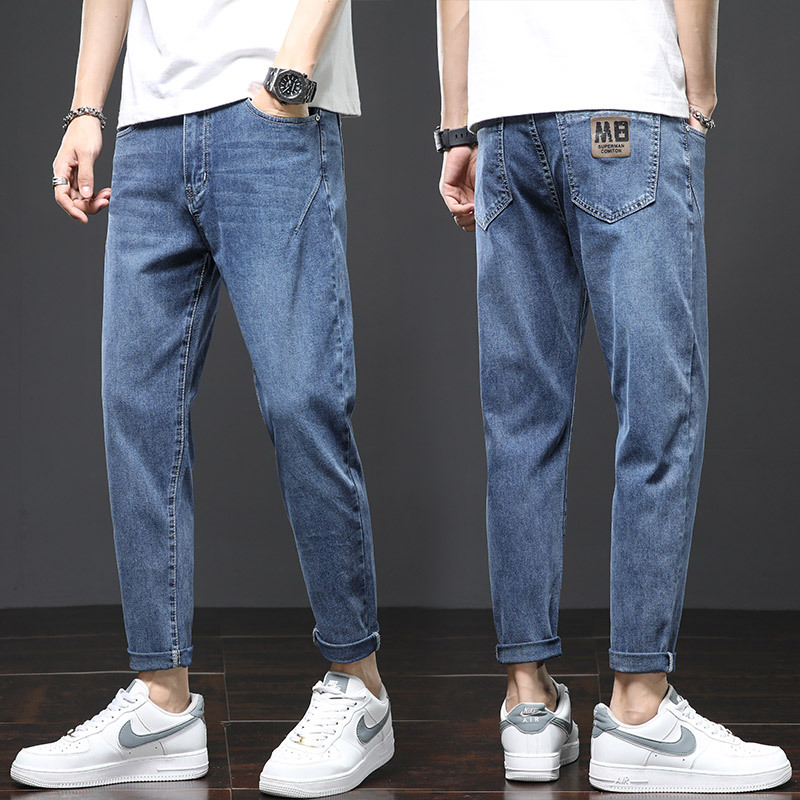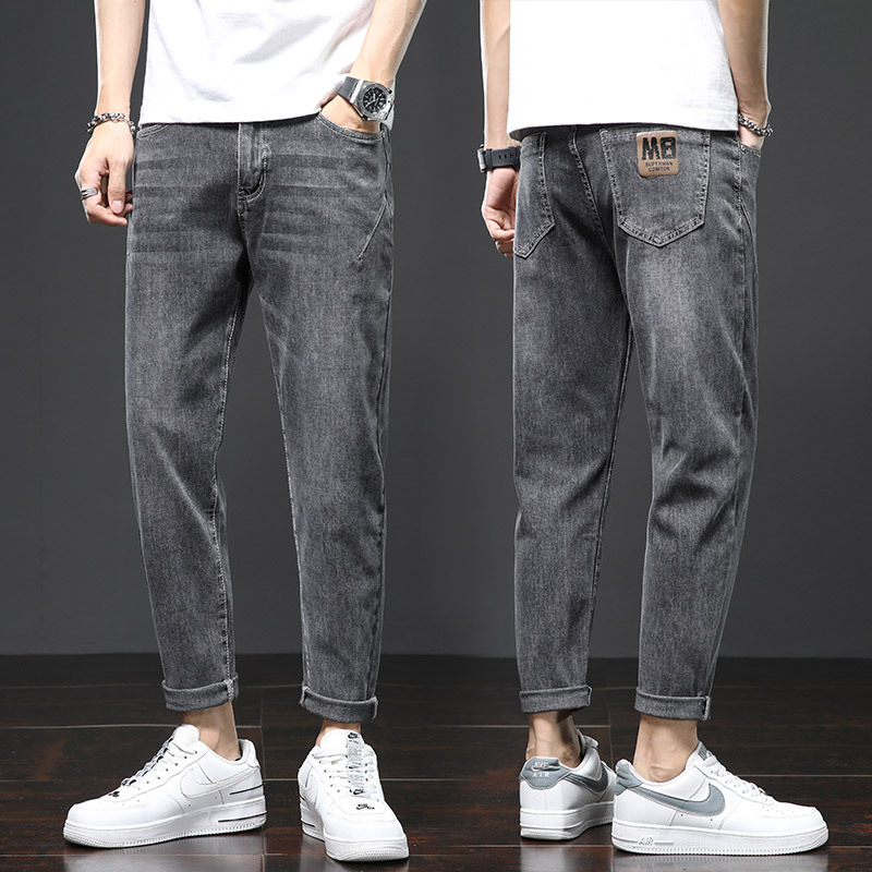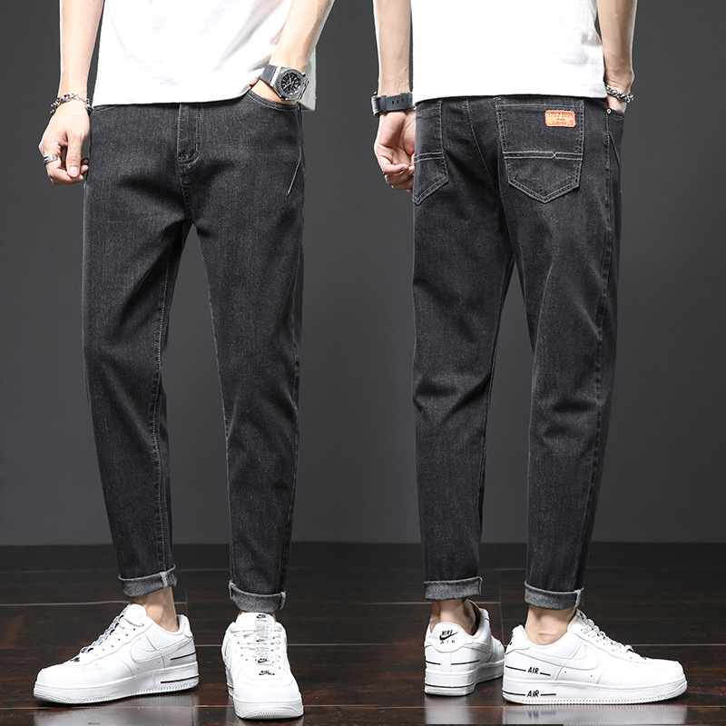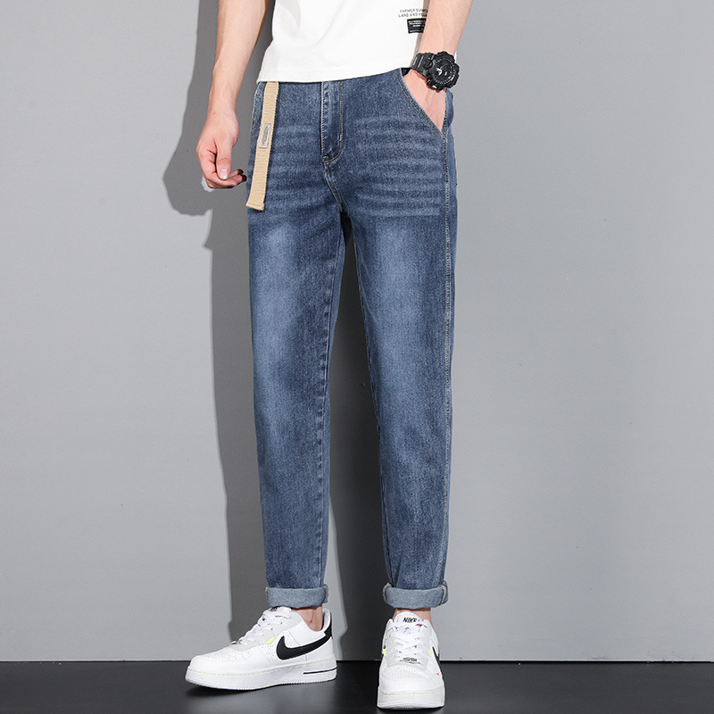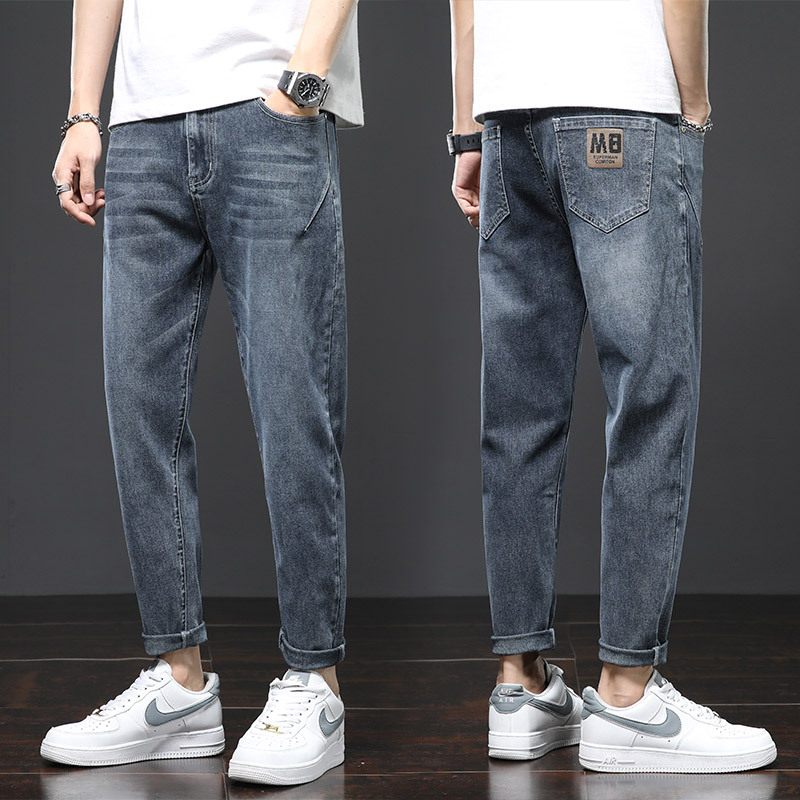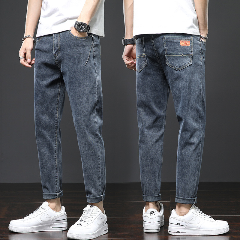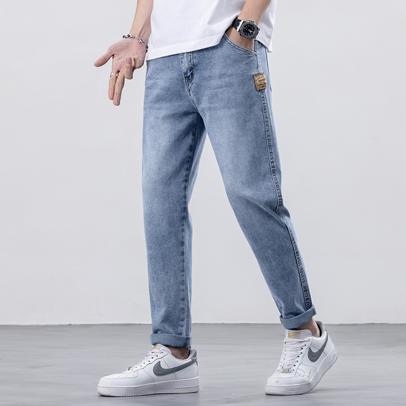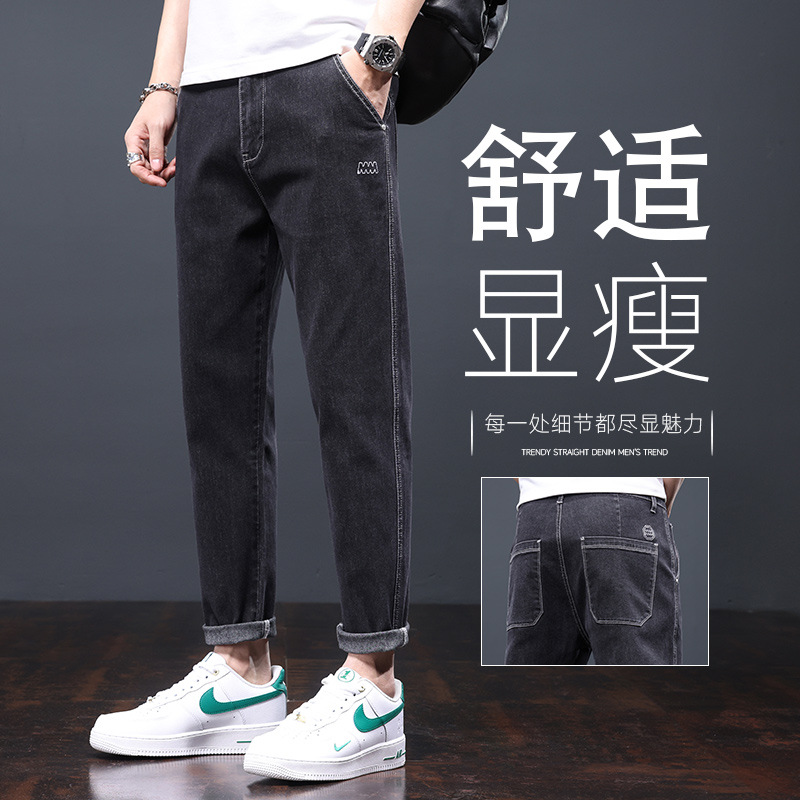 남성용 9부 데님 팬츠, 트렌디한 브랜드, 부드러운 스트레이트 루즈핏, 캐주얼 롱 팬츠, 남성 신상품, 봄 가을용 만능 팬츠