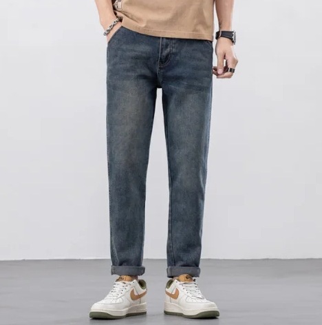 남성용 9부 데님 팬츠, 트렌디한 브랜드, 부드러운 스트레이트 루즈핏, 캐주얼 롱 팬츠, 남성 신상품, 봄 가을용 만능 팬츠스토어 가기