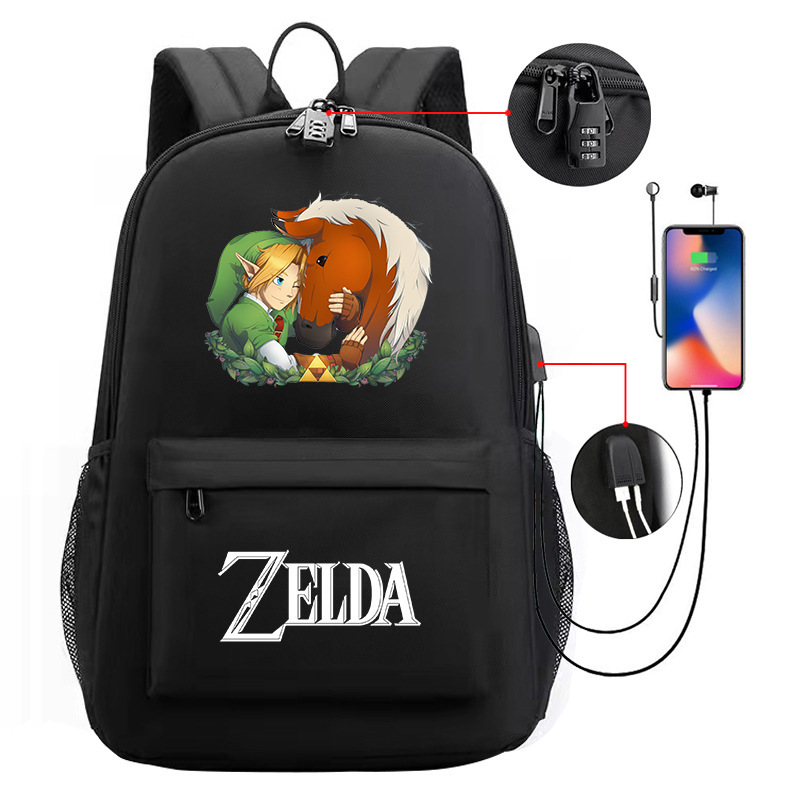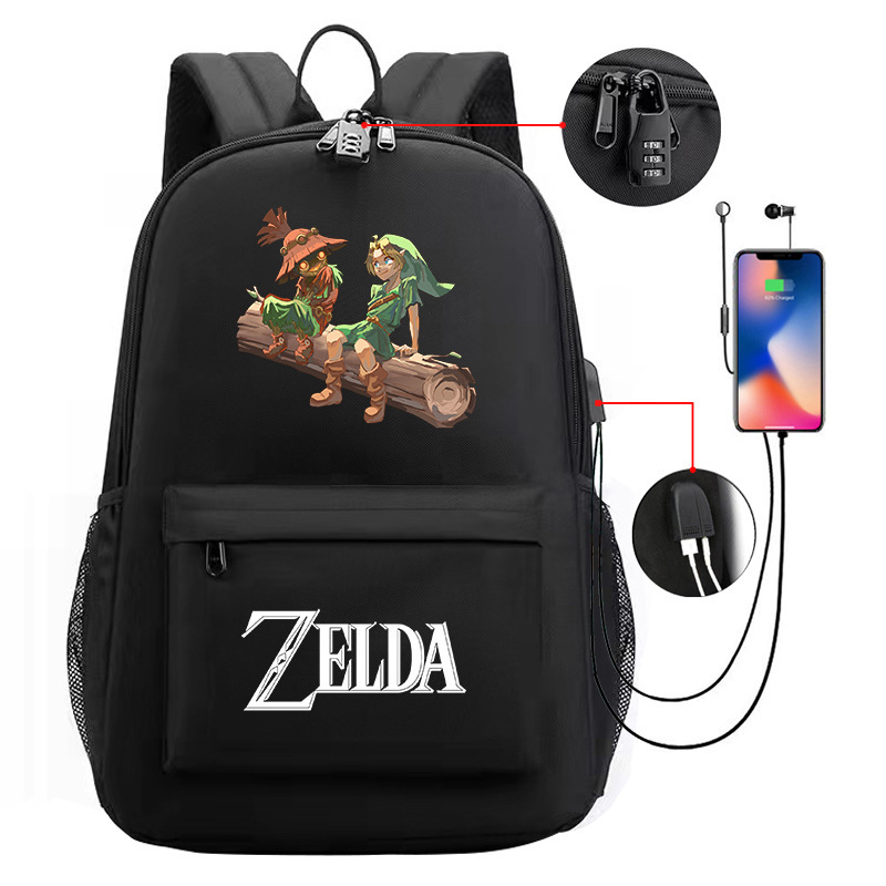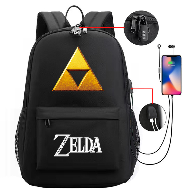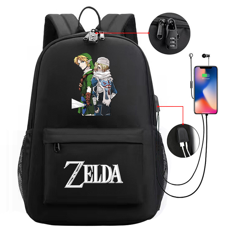 국경을 넘는 게임 젤다의 전설 주변 상품 학생 가방 USB 충전 백팩 만화 애니메이션 백팩