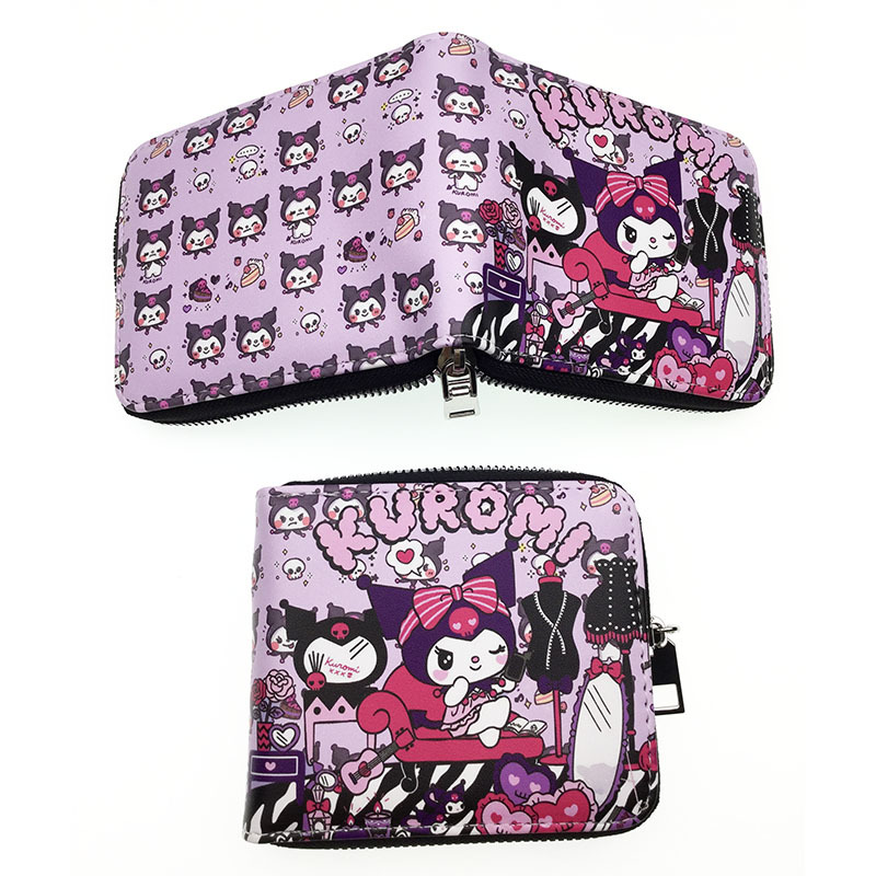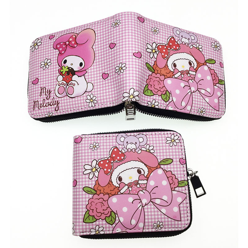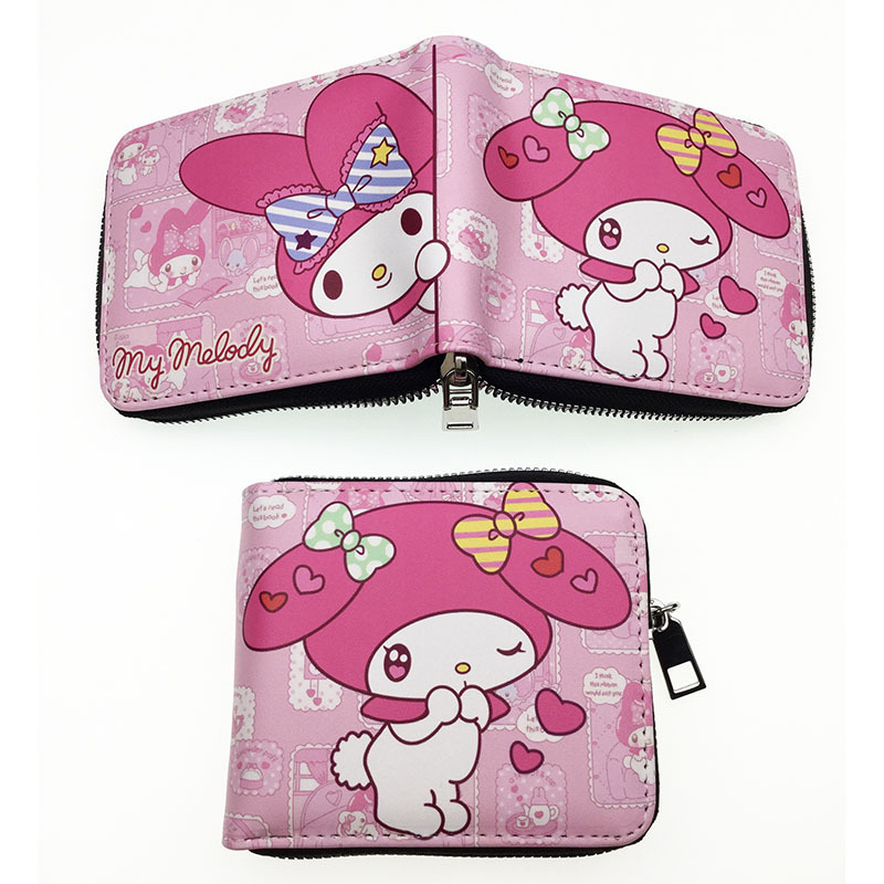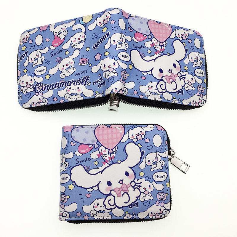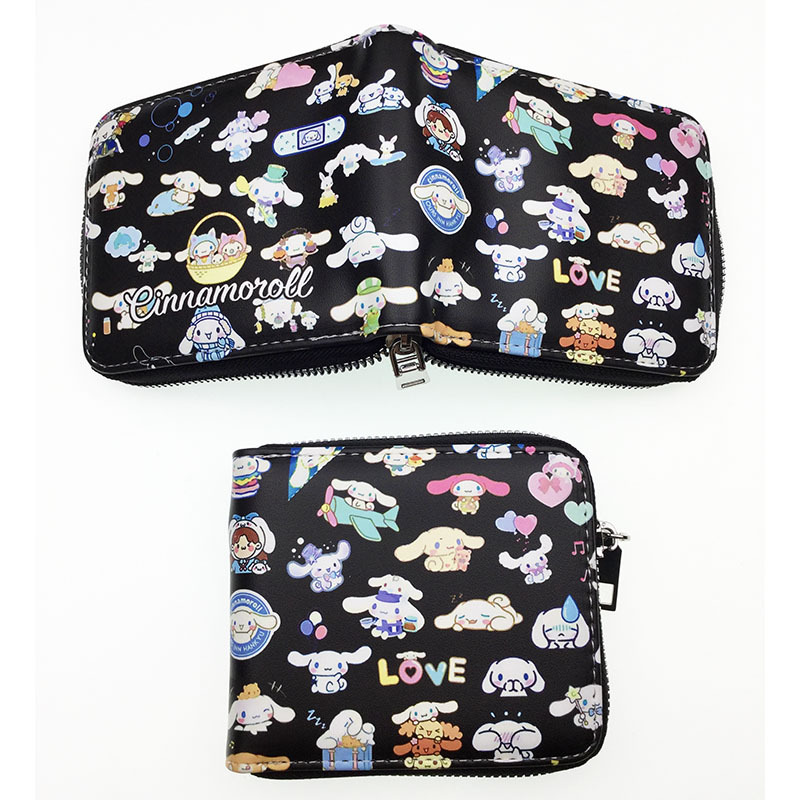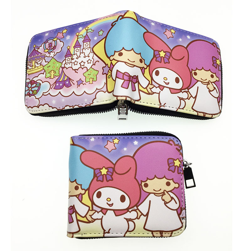 귀여운 만화 지퍼 지갑 멜로디 PC 개 쌍둥이 자리 짧은 PU 가죽 접이식 카드 가방 지갑스토어 가기
