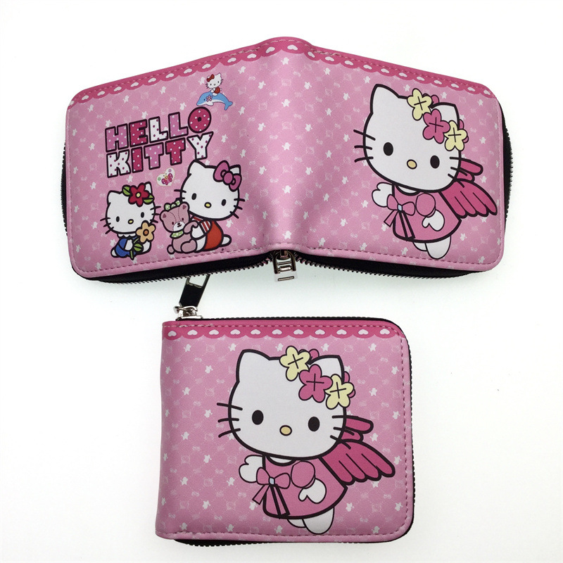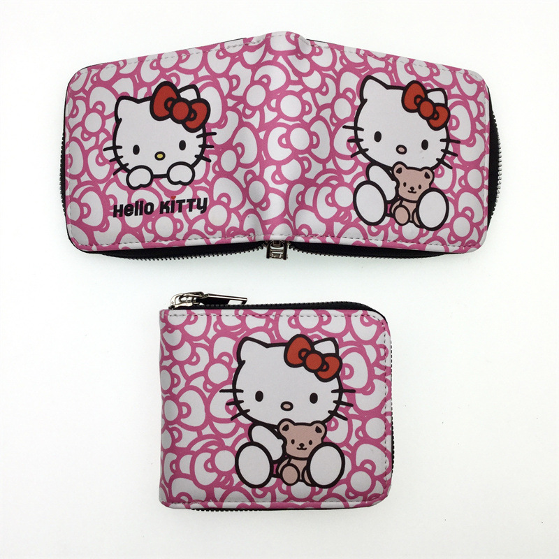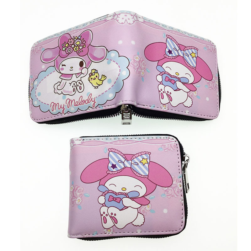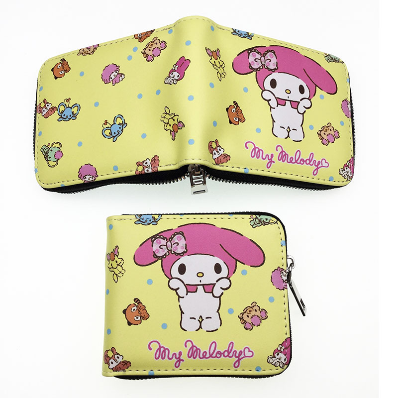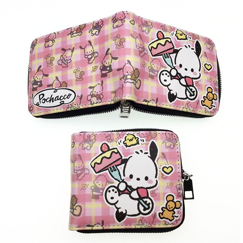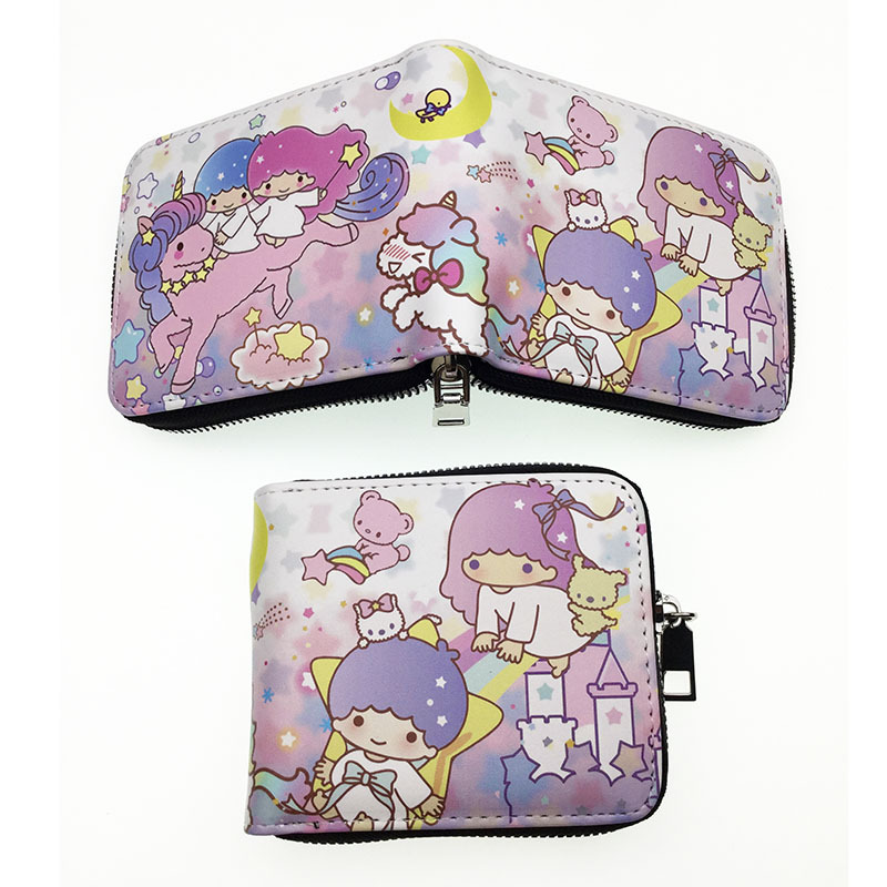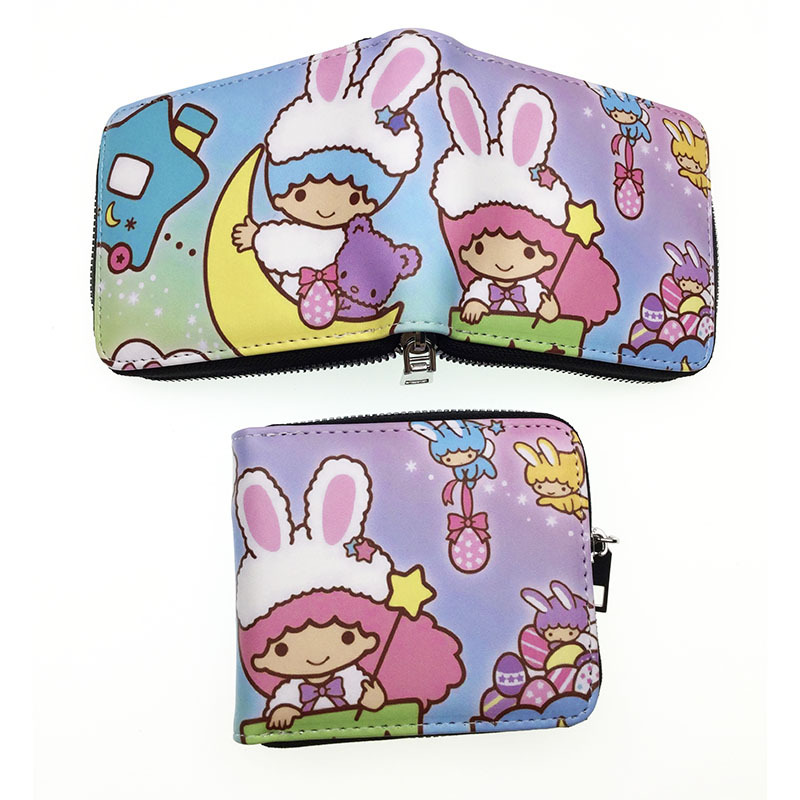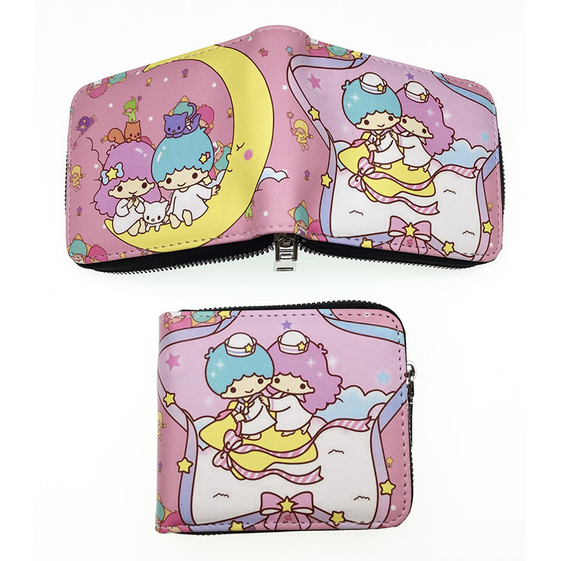 귀여운 만화 지퍼 지갑 멜로디 PC 개 쌍둥이 자리 짧은 PU 가죽 접이식 카드 가방 지갑