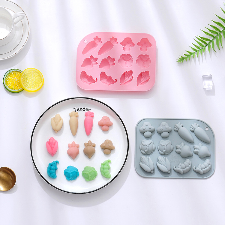 다른 정원 야채 모델링 실리콘 몰드 베이킹 케이크 몰드 접착제 초콜릿 곰팡이의 재고 12 심지어 6 종류