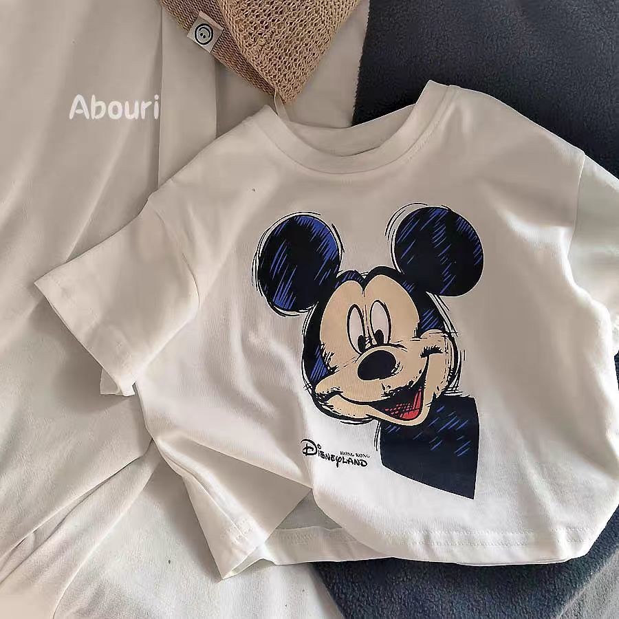 남아 및 여아용 한국 아동복, 아동용 라운드 넥 반팔 티셔츠, 2025 여름 신상 면 반팔 상의, 트렌디함스토어 가기