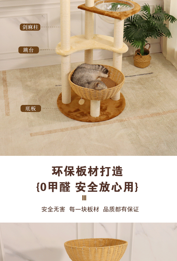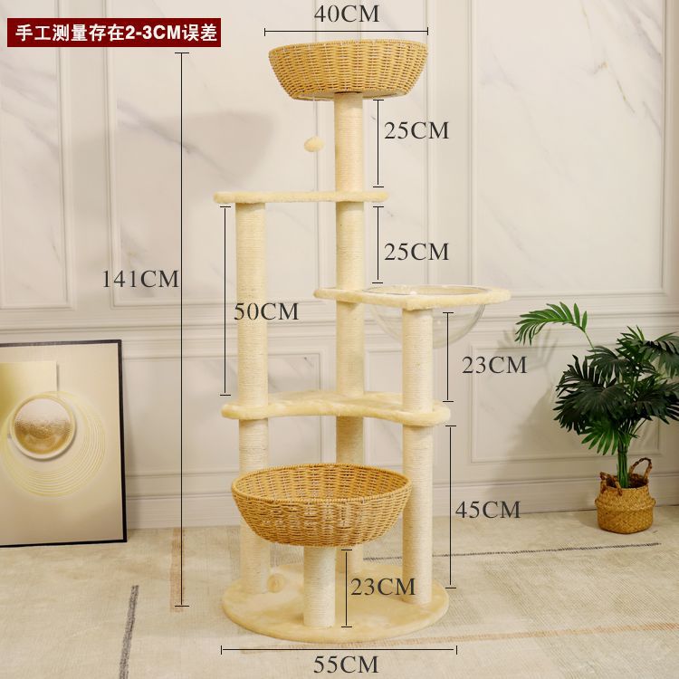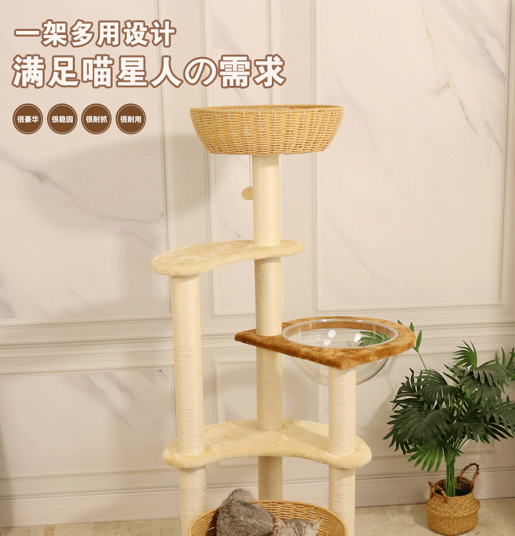 등나무 직조 고양이 등반 프레임 고양이 둥지 고양이 나무 통합 사계절 대형 일본 사이 잘삼 단단한 나무 고층 플랫폼을 차지하지 않습니다