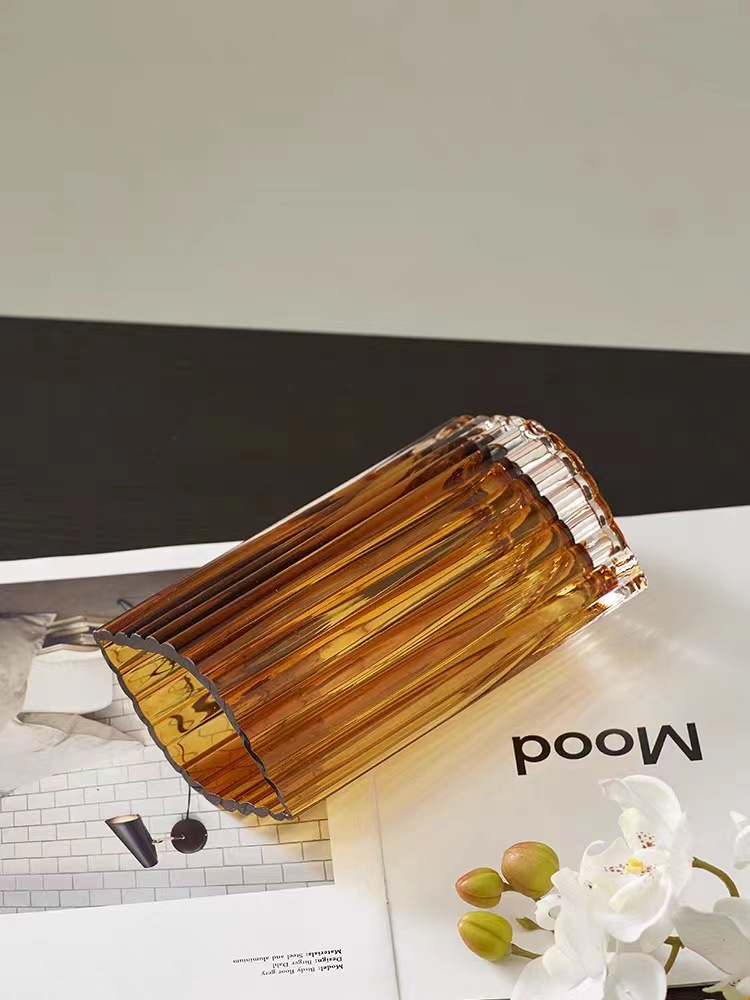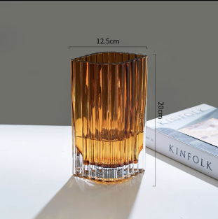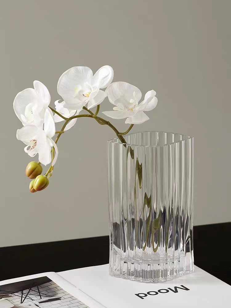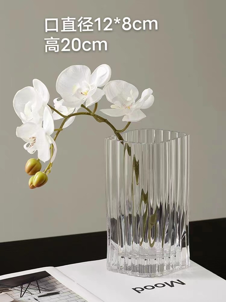 간단한 현대 유리 꽃병 고급 투명 방수 꽃 배열 꽃 거실 사이버 연예인 작은 꽃병 직선 넓은 입스토어 가기