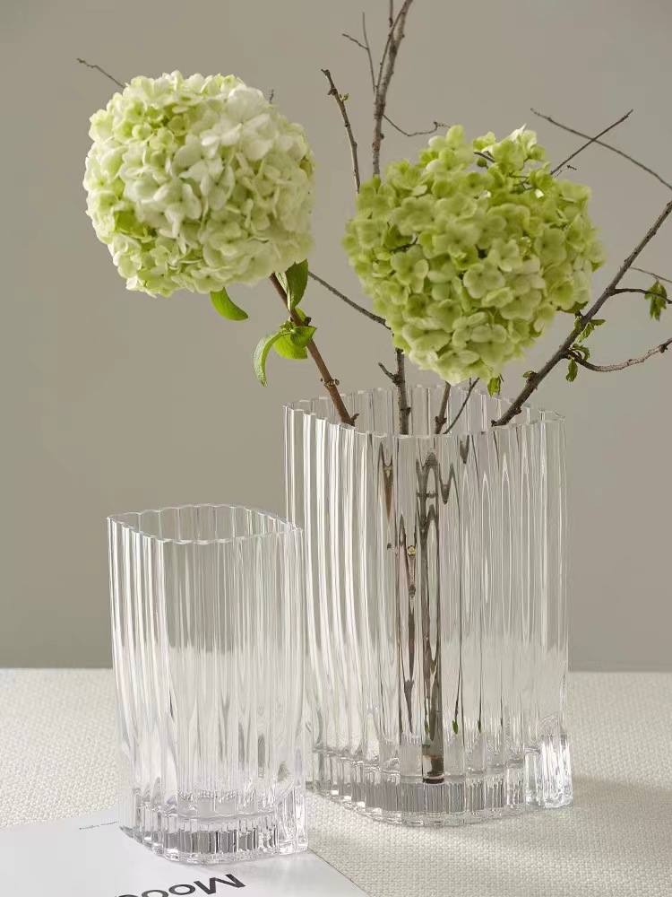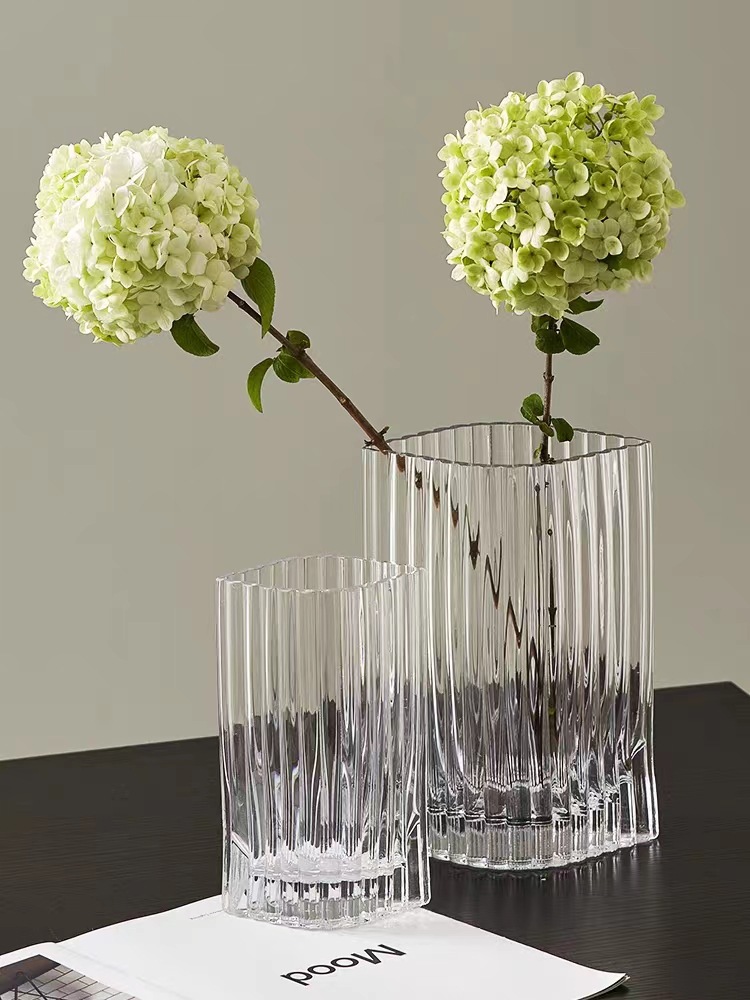간단한 현대 유리 꽃병 고급 투명 방수 꽃 배열 꽃 거실 사이버 연예인 작은 꽃병 직선 넓은 입