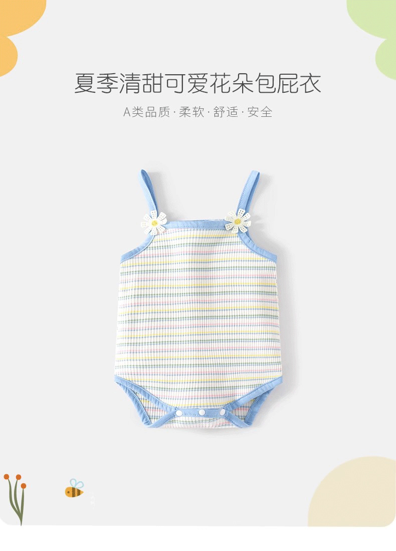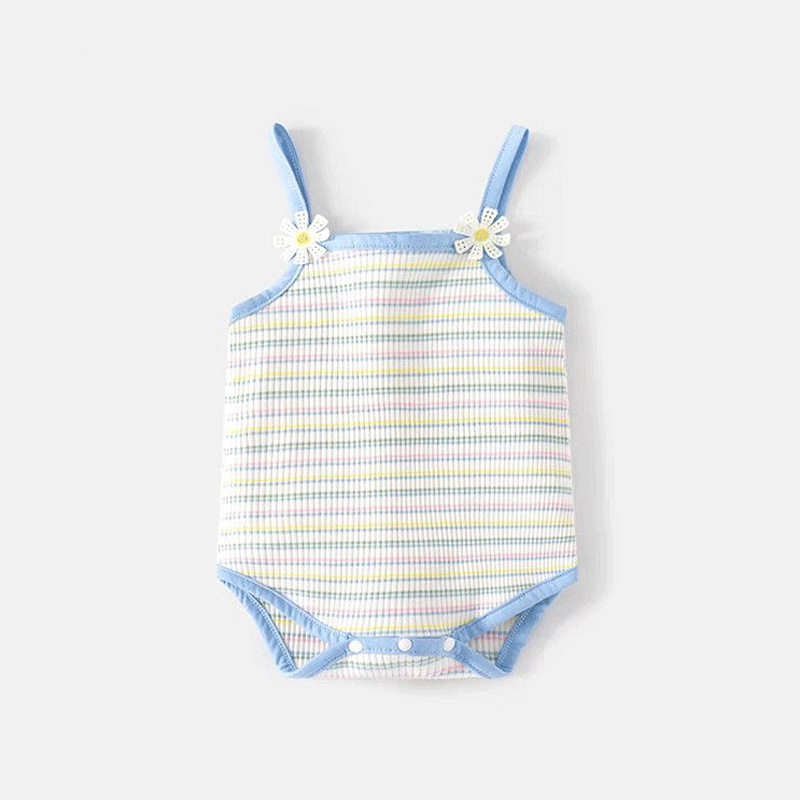 2025 여름 아기옷 스트라이프 유아 여아 의류 부드럽고 피부 친화적인 멜빵 바디수트