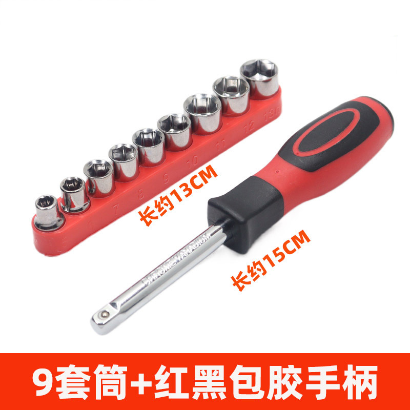 • 크롬 도금 9mm 소켓 + 레드 & 블랙 고무 코팅 미니 플라이 핸들 (194g)