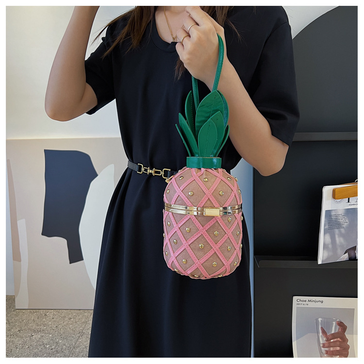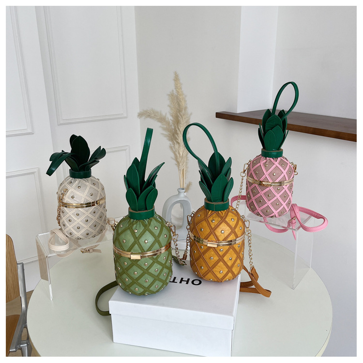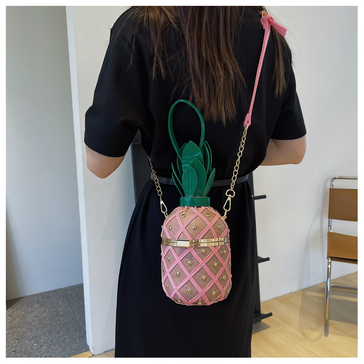 여름 새로운 인기 모든 매치 크로스 바디 백 휴대용 파인애플 버킷 백 개인화 된 디자인 작은 신선한 체인 숄더 백