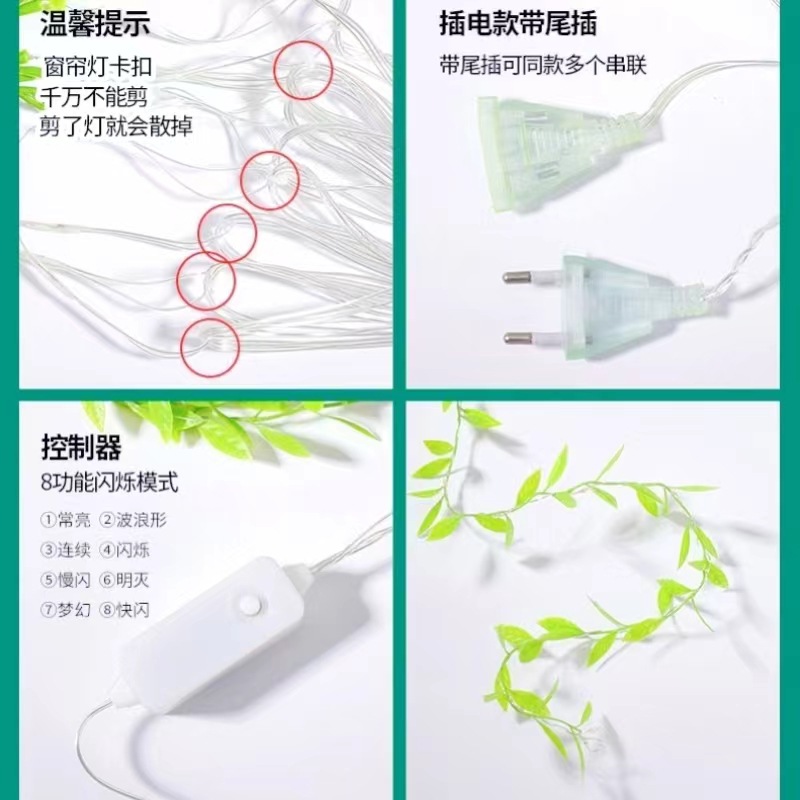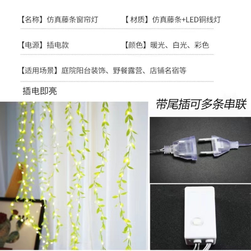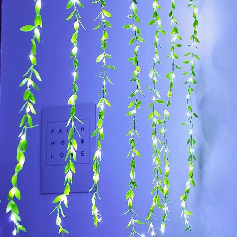 크로스보더 LED 버드나무 잎 조명, 구리선 커튼 조명, 실내 침실 발코니 장식 조명, 분위기 조명, 조명 걸이등스토어 가기