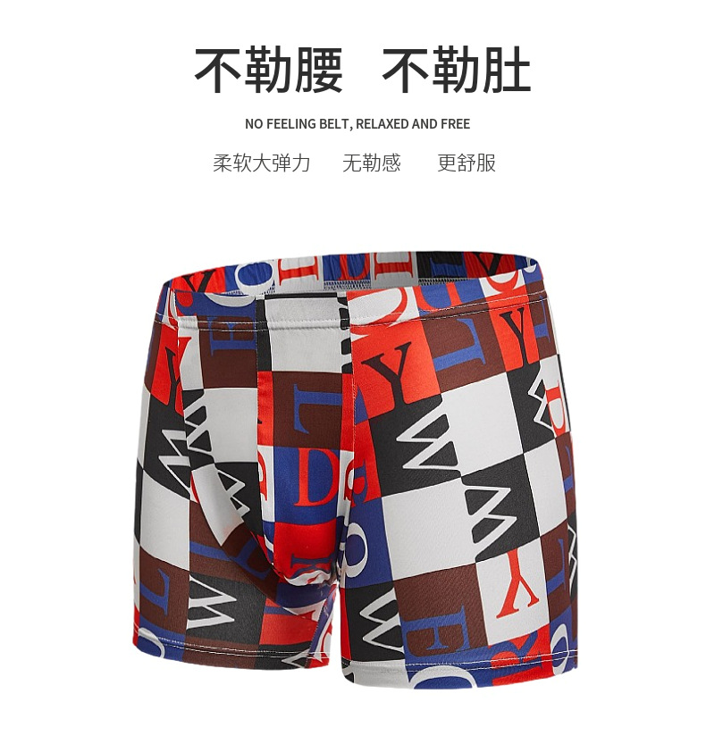 남성용 아이스 실크 프린트 팬티 시원한 얇은 사각팬티 통기성 귀여운 편안한 중간 허리 사각팬티 해외 공급스토어 가기