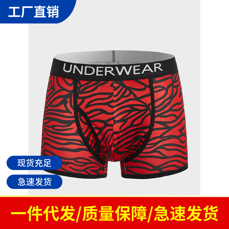 남성용 아이스 실크 프린트 팬티 시원한 얇은 사각팬티 통기성 귀여운 편안한 중간 허리 사각팬티 해외 공급