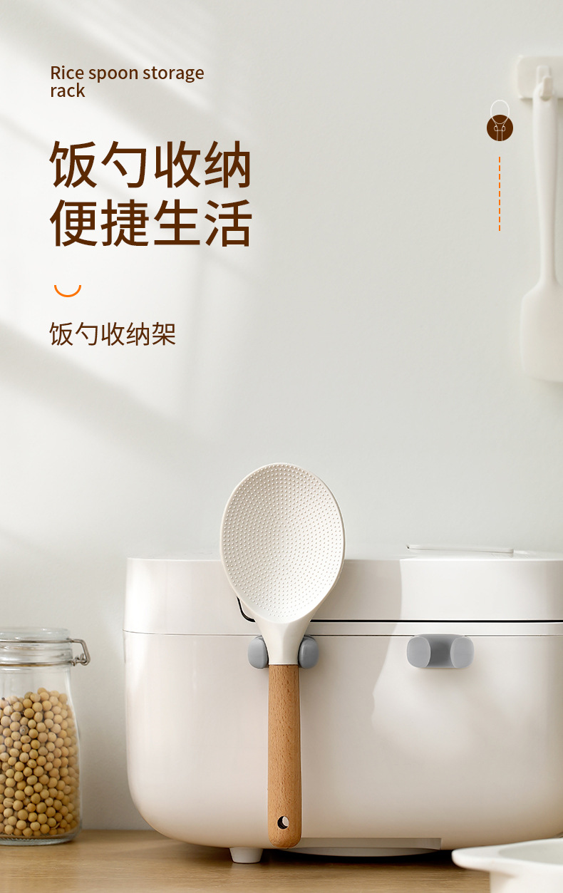 FaSoLa 접착 쌀 숟가락 보관 랙 주방 벽걸이 밥솥 실리콘 후크 쌀 숟가락 보관 랙