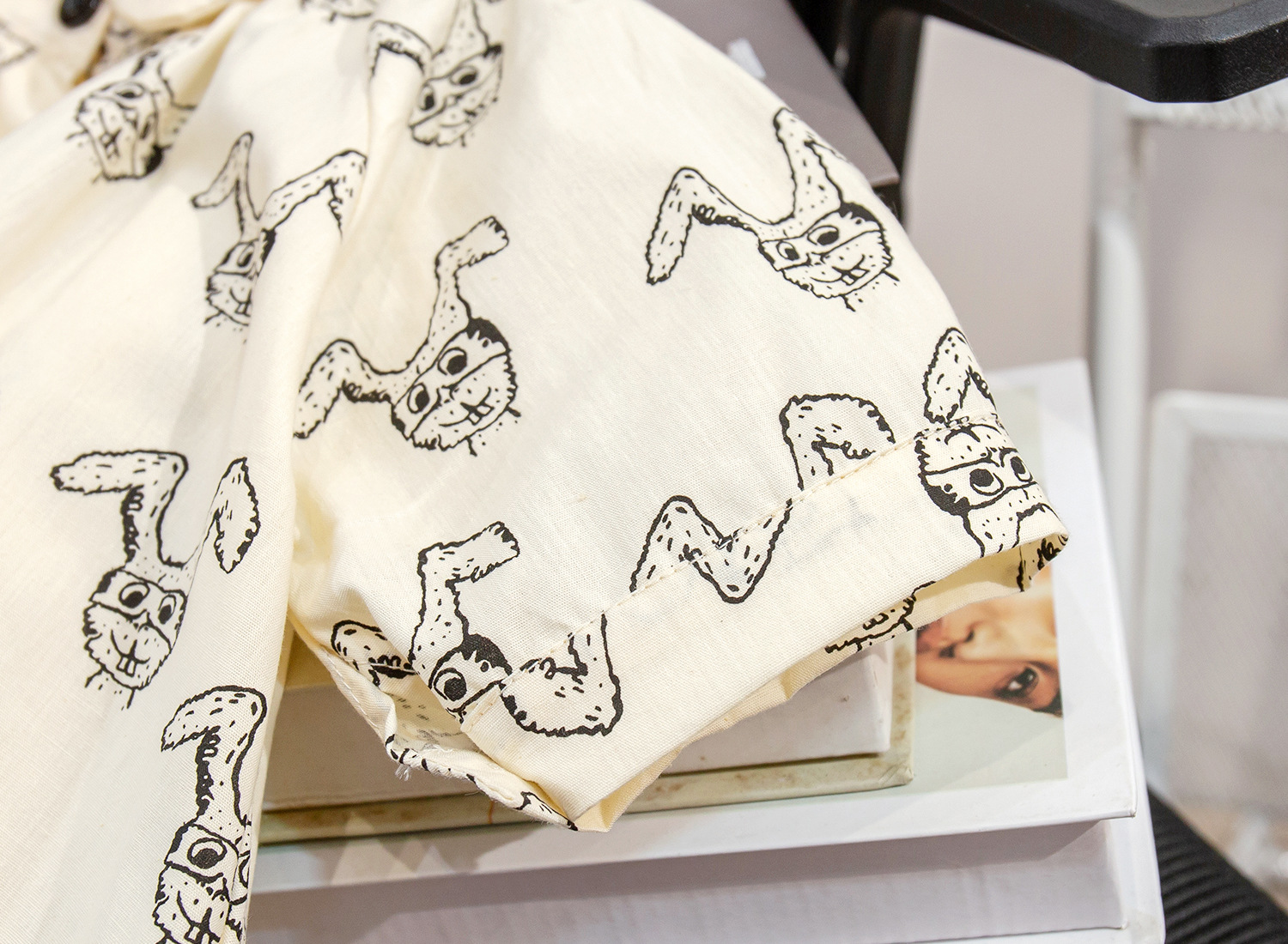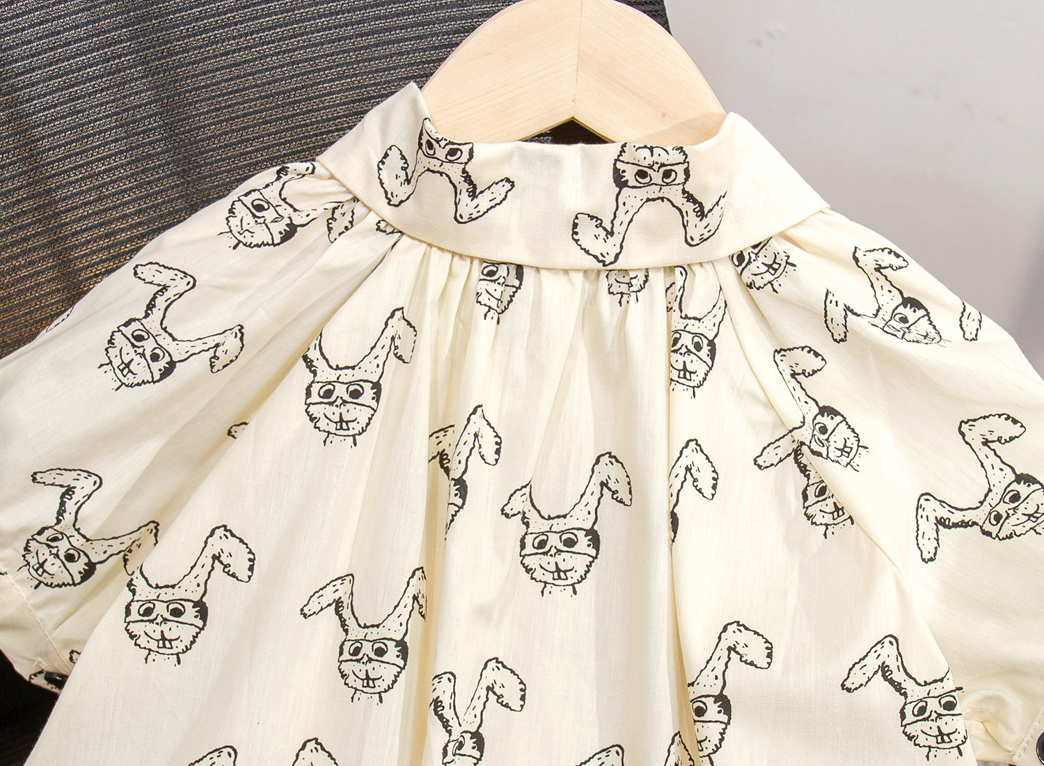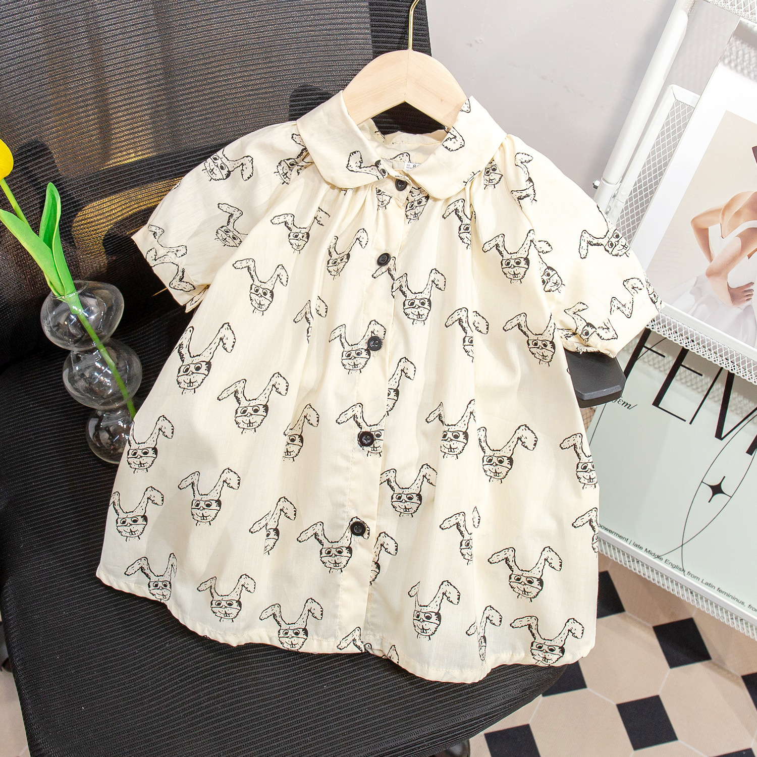 소녀의 만화 패턴 짧은 소매 원피스 2023 여름 새로운 한국 스타일 소녀의 귀여운 동물 얇은 인형 원피스스토어 가기