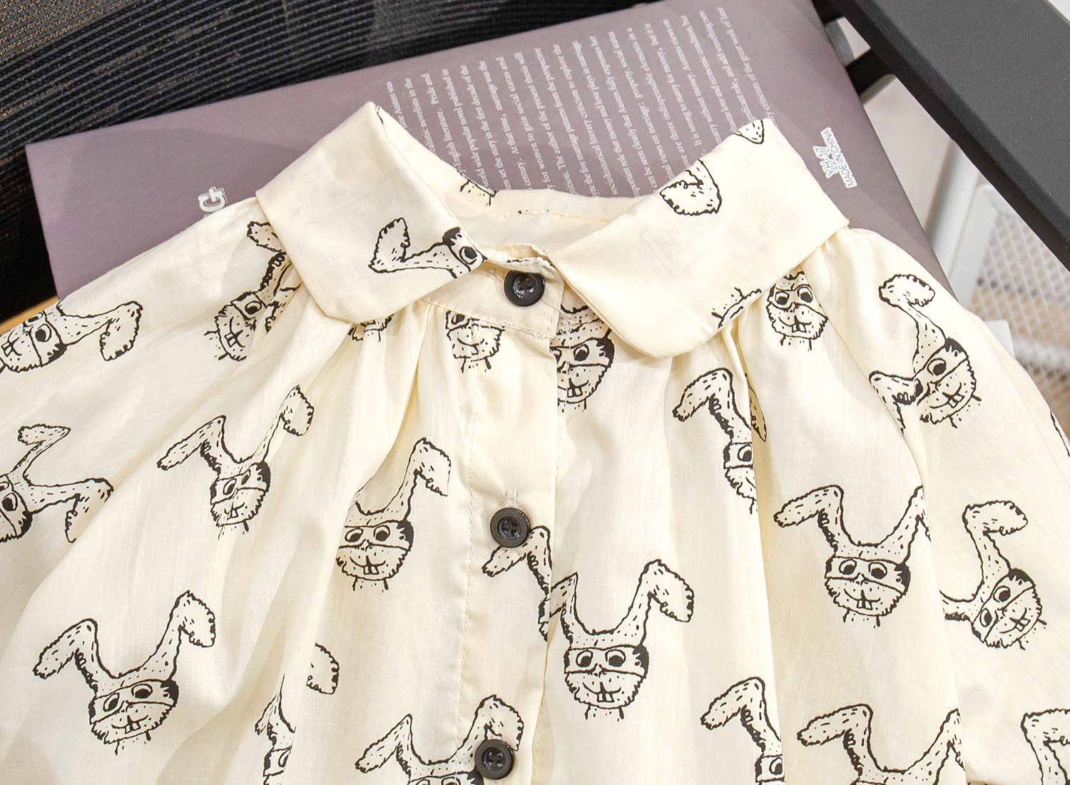 소녀의 만화 패턴 짧은 소매 원피스 2023 여름 새로운 한국 스타일 소녀의 귀여운 동물 얇은 인형 원피스