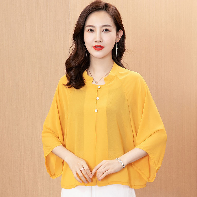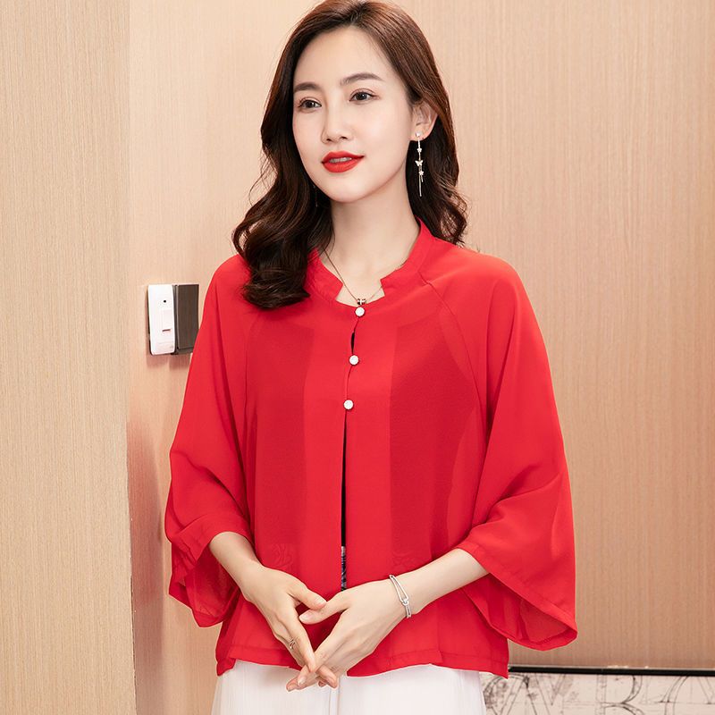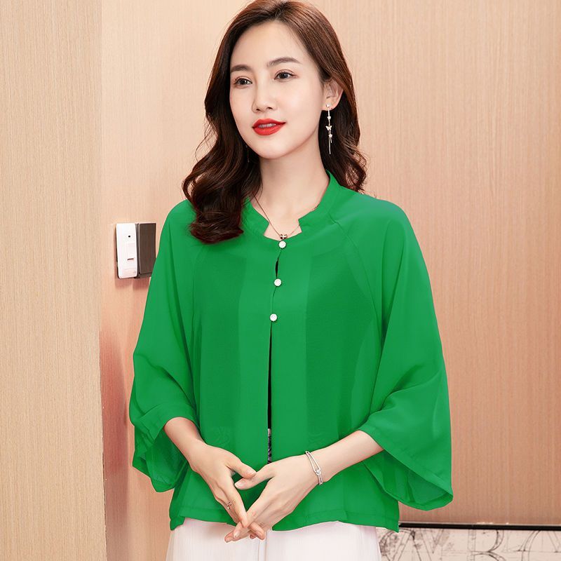 2024 년 여름 의상 쉬폰 카디건 여성 대형 슬리밍 숄 썬 스크린 얇은 코트 서양식 올 매치 루즈 작은 셔츠