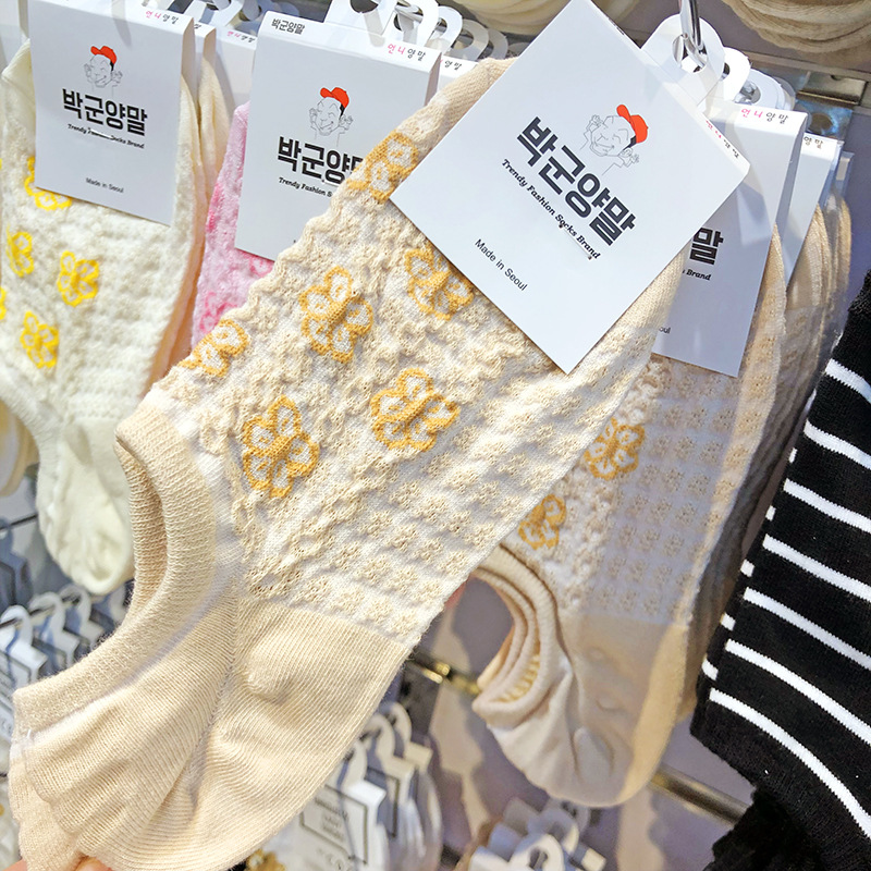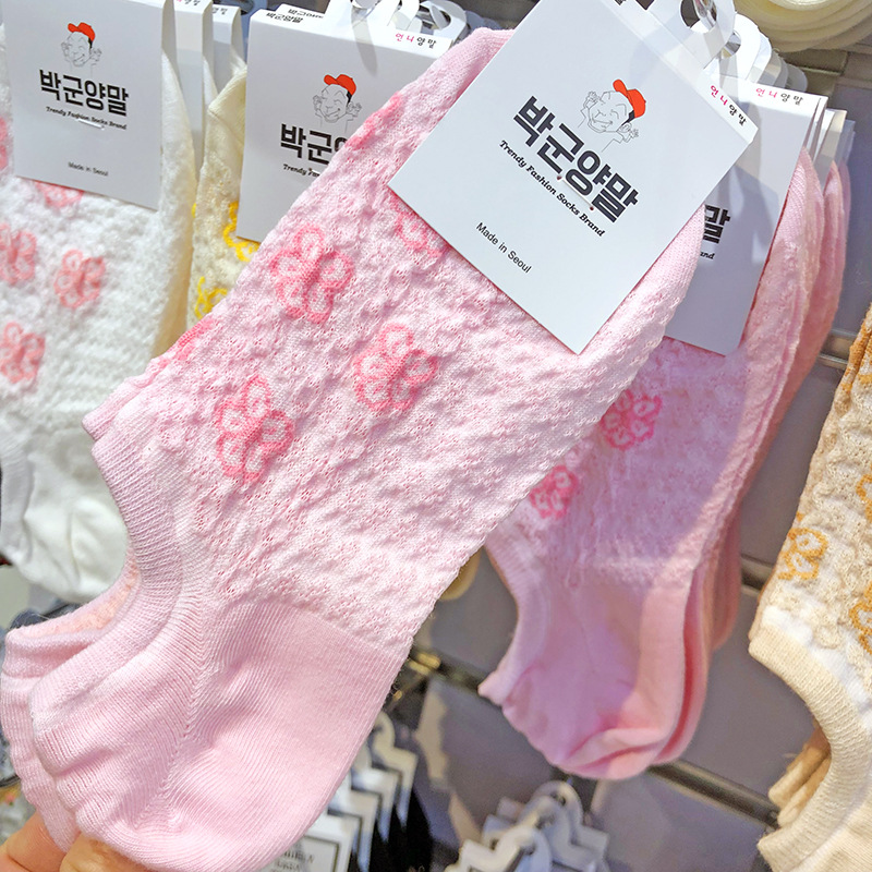 한국 수입 여성용 보트 양말 양각 중공 작은 꽃 분리 방지 보이지 않는 양말 봄과 여름 통기성 짧은 면 양말스토어 가기