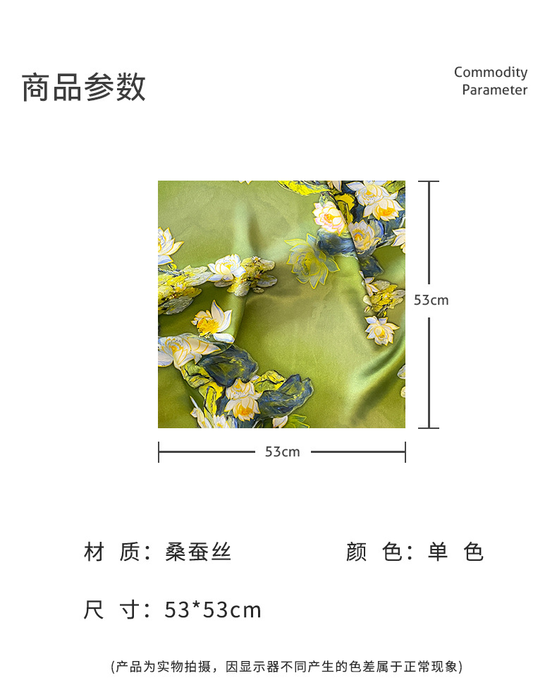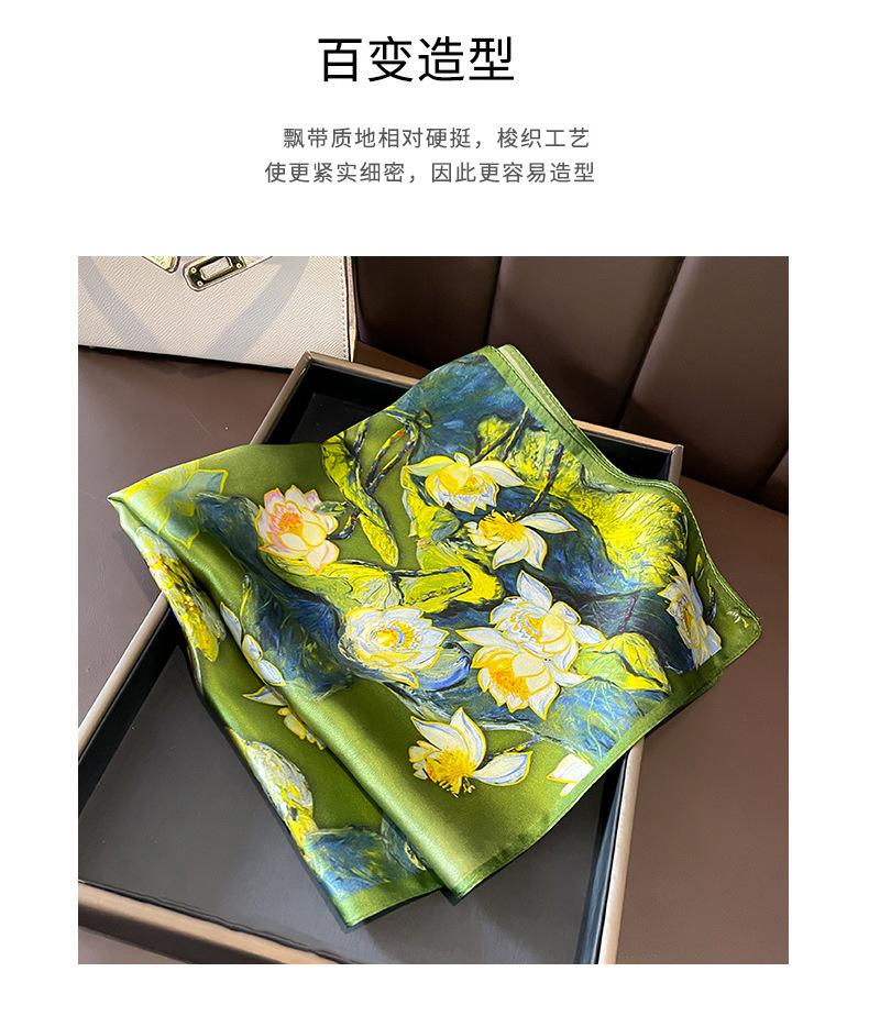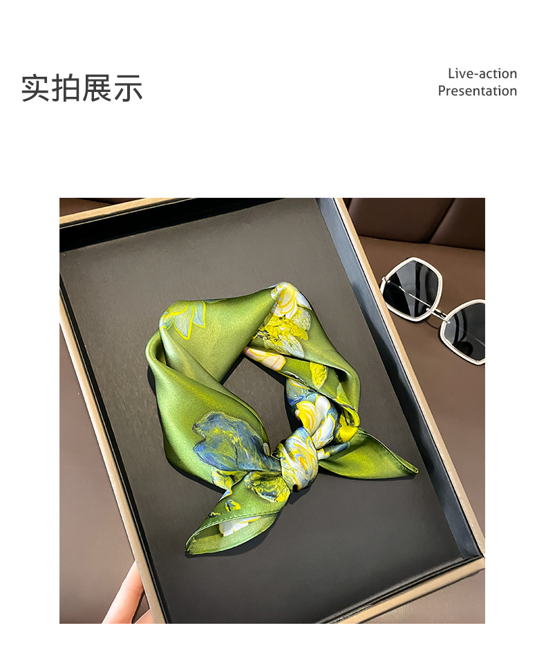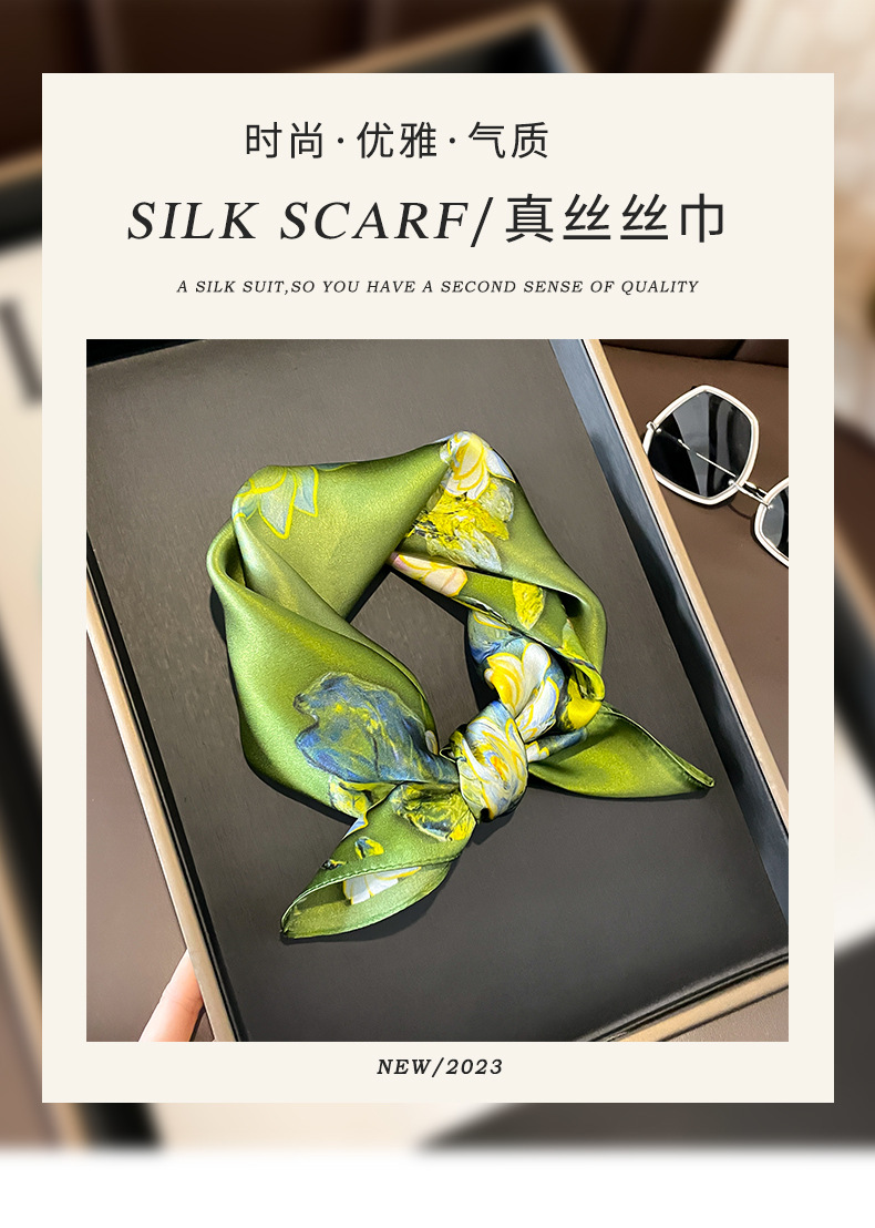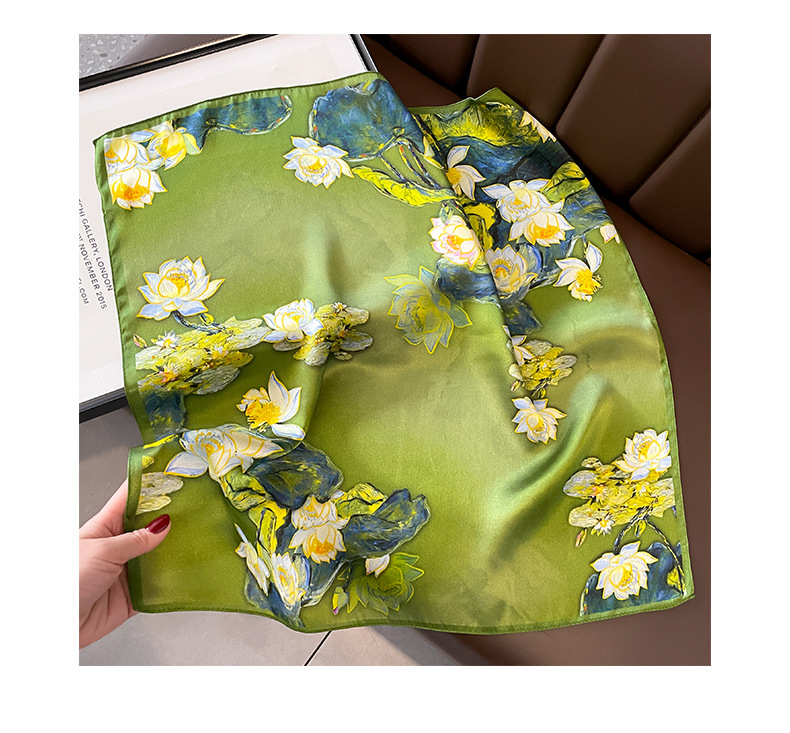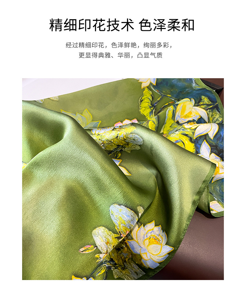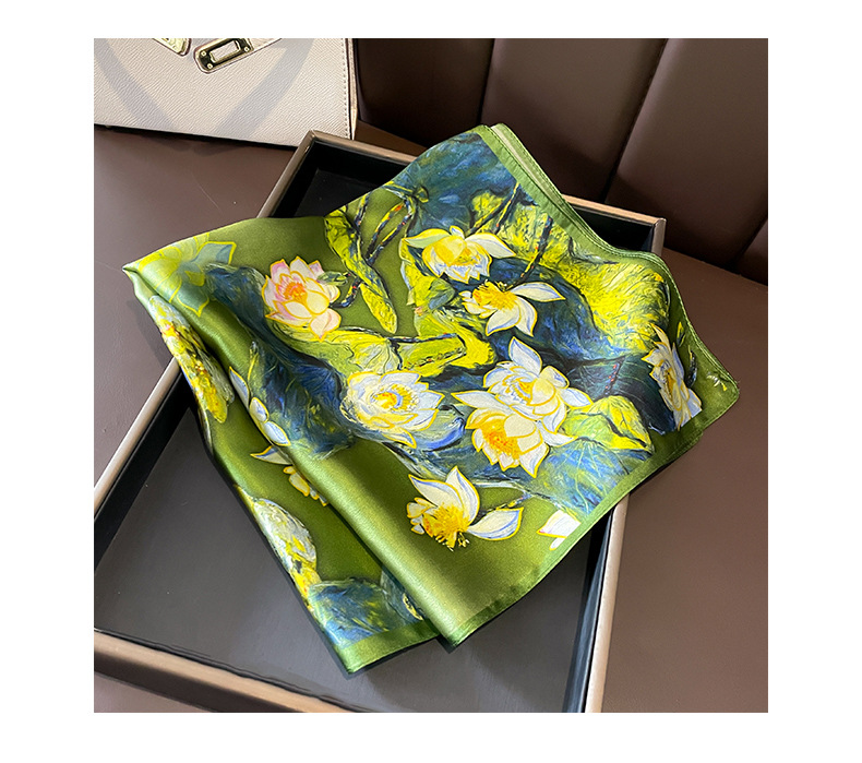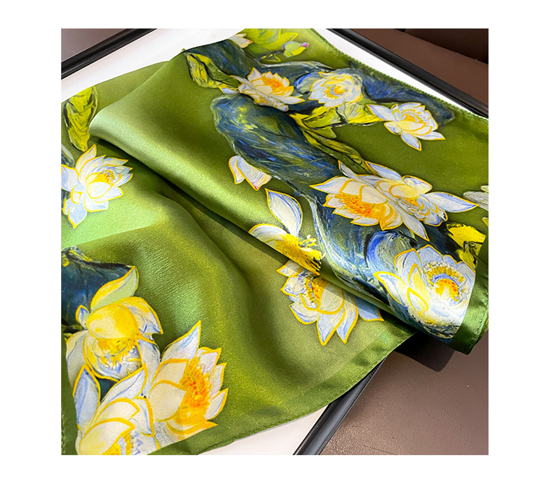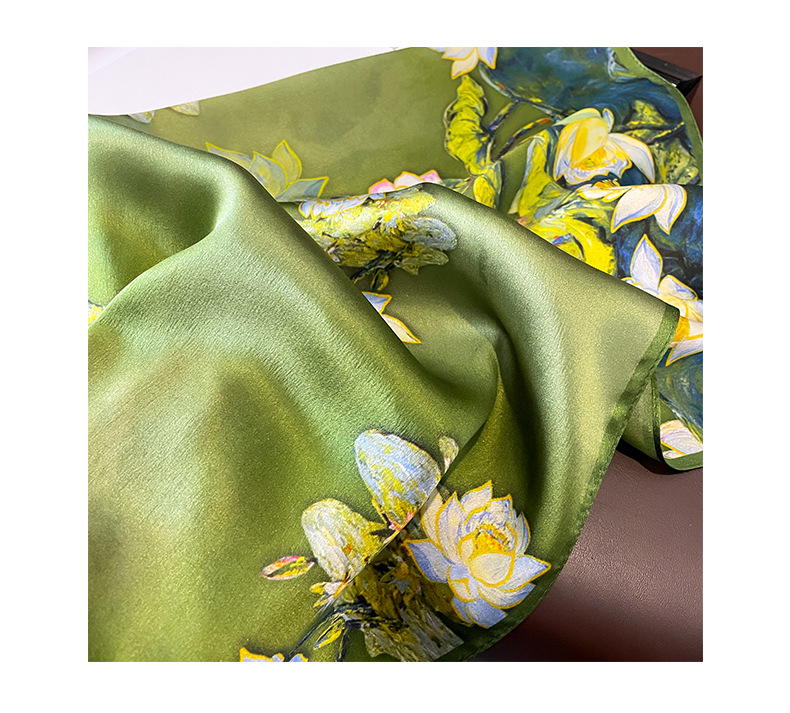 여름 새로운 유화 녹색 패션 꽃 우아한 모든 매치 스퀘어 실크 장식 목 스카프 뽕나무 실크 스카프