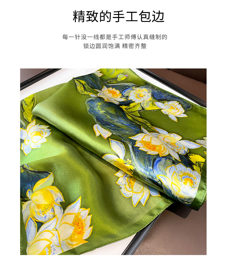 여름 새로운 유화 녹색 패션 꽃 우아한 모든 매치 스퀘어 실크 장식 목 스카프 뽕나무 실크 스카프스토어 가기