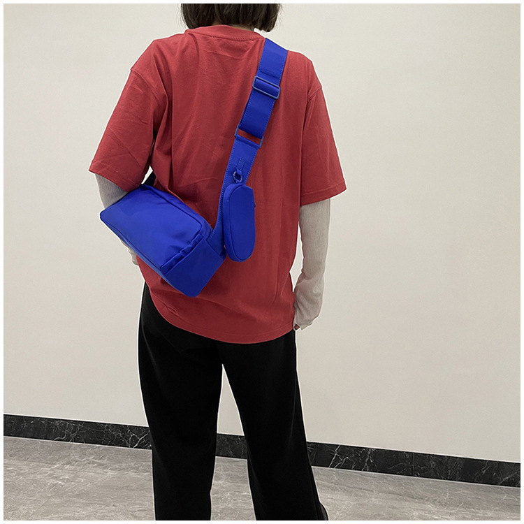한국 스타일 트렌디 심플 솔리드 컬러 클라인 블루 크로스바디 백 여성용 트렌디 대용량 보스턴 여행 가방 남성 숄더백스토어 가기