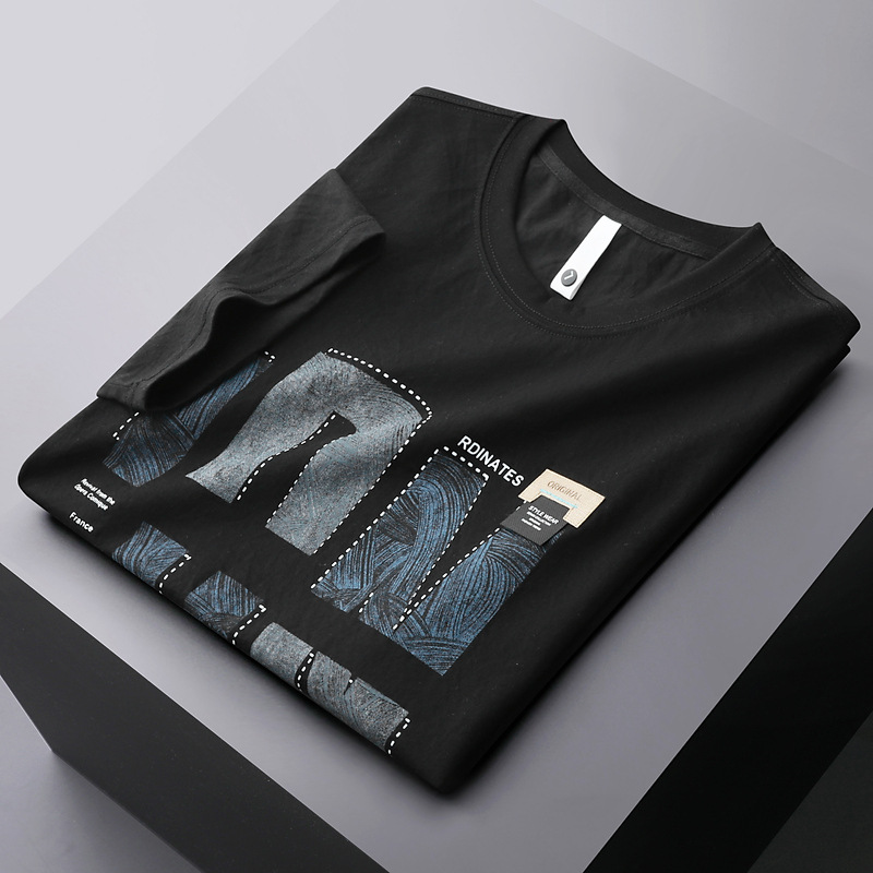 아이스 실크 모조 린넨 반팔 남성 티셔츠 여름 린넨 프린트 라운드 넥 탑 2025 청소년 티셔츠스토어 가기