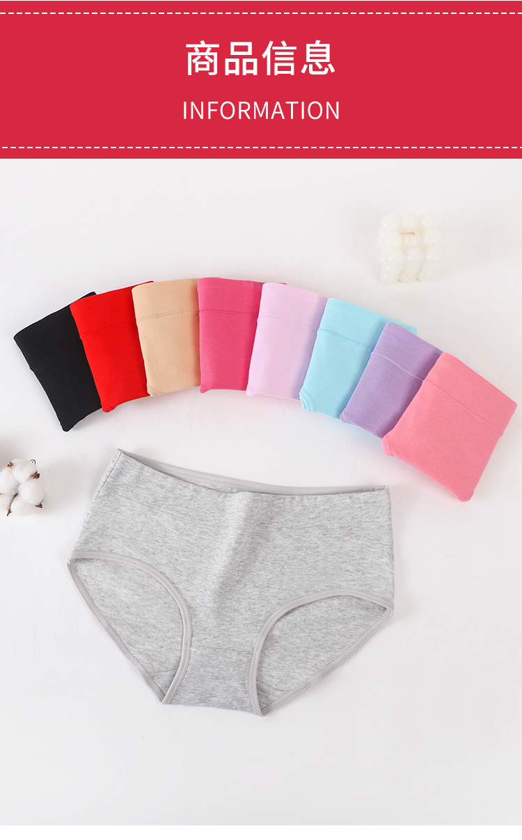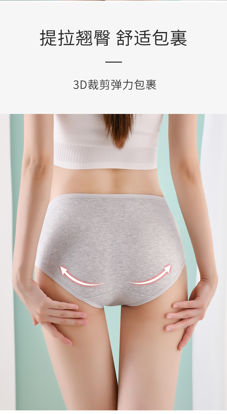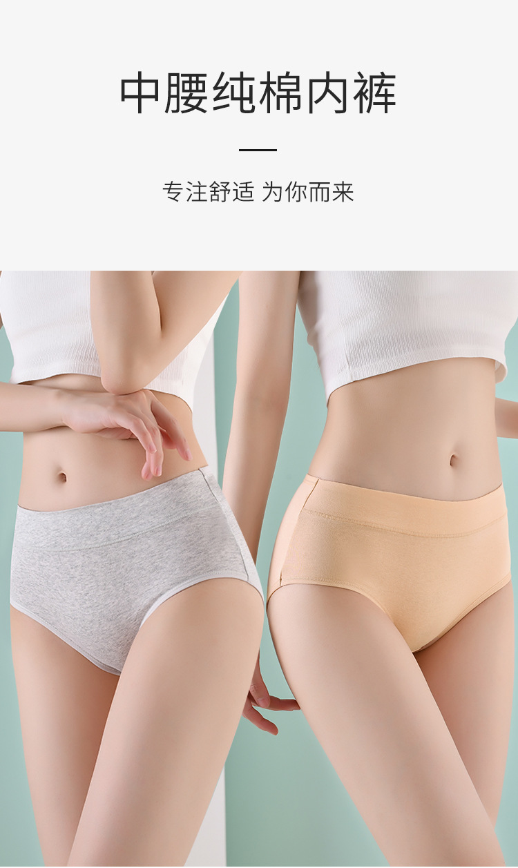 여성용 순면 중간 허리 팬티 단색 편안한 통기성 클래식 순면 가랑이 엉덩이 리프팅 반바지 팬티스토어 가기