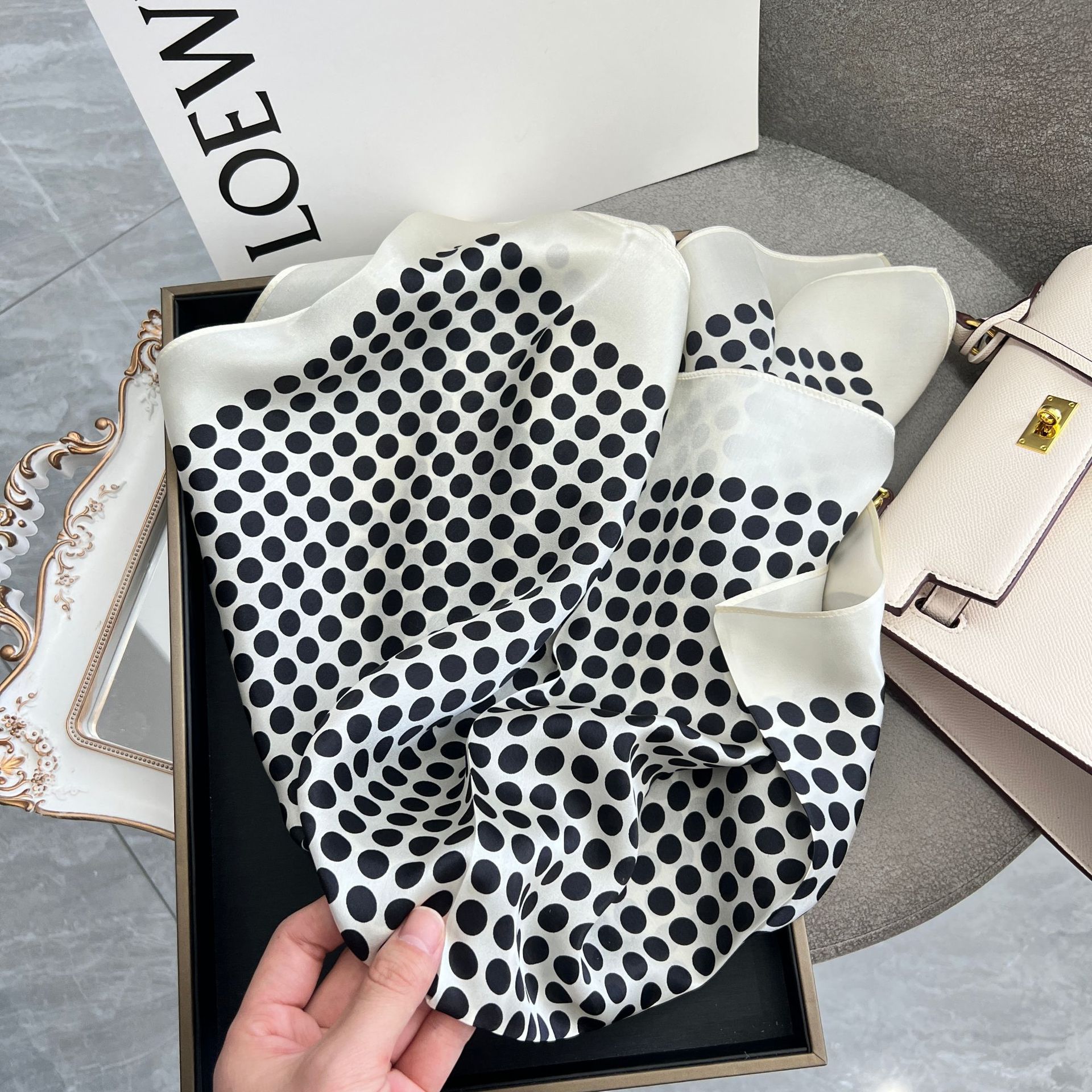 폴카 100% 뽕나무 실크 라지 스퀘어 스카프 봄과 가을 고급 패션 모든 매치 여성 매칭 셔츠 비즈니스웨어