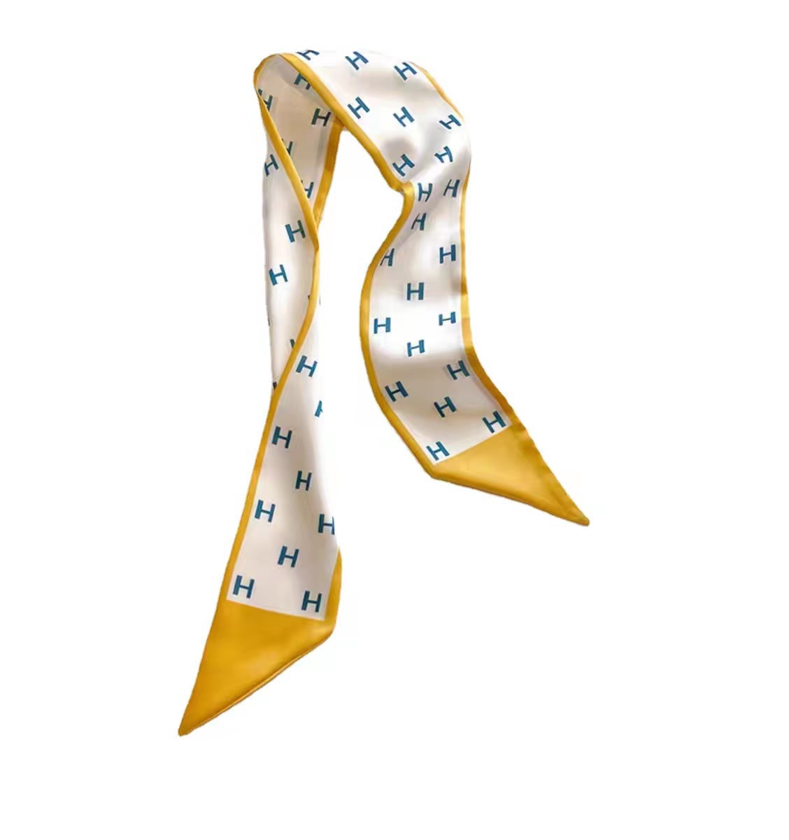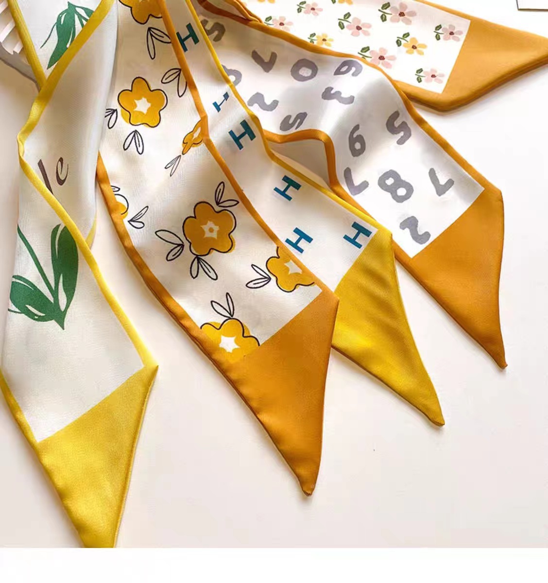 부드러운 노란색 꽃 실크 스카프 여자의 봄 여름 가을 긴 리본 스카프 장식 헤어 밴드 다기능 넥타이 리본