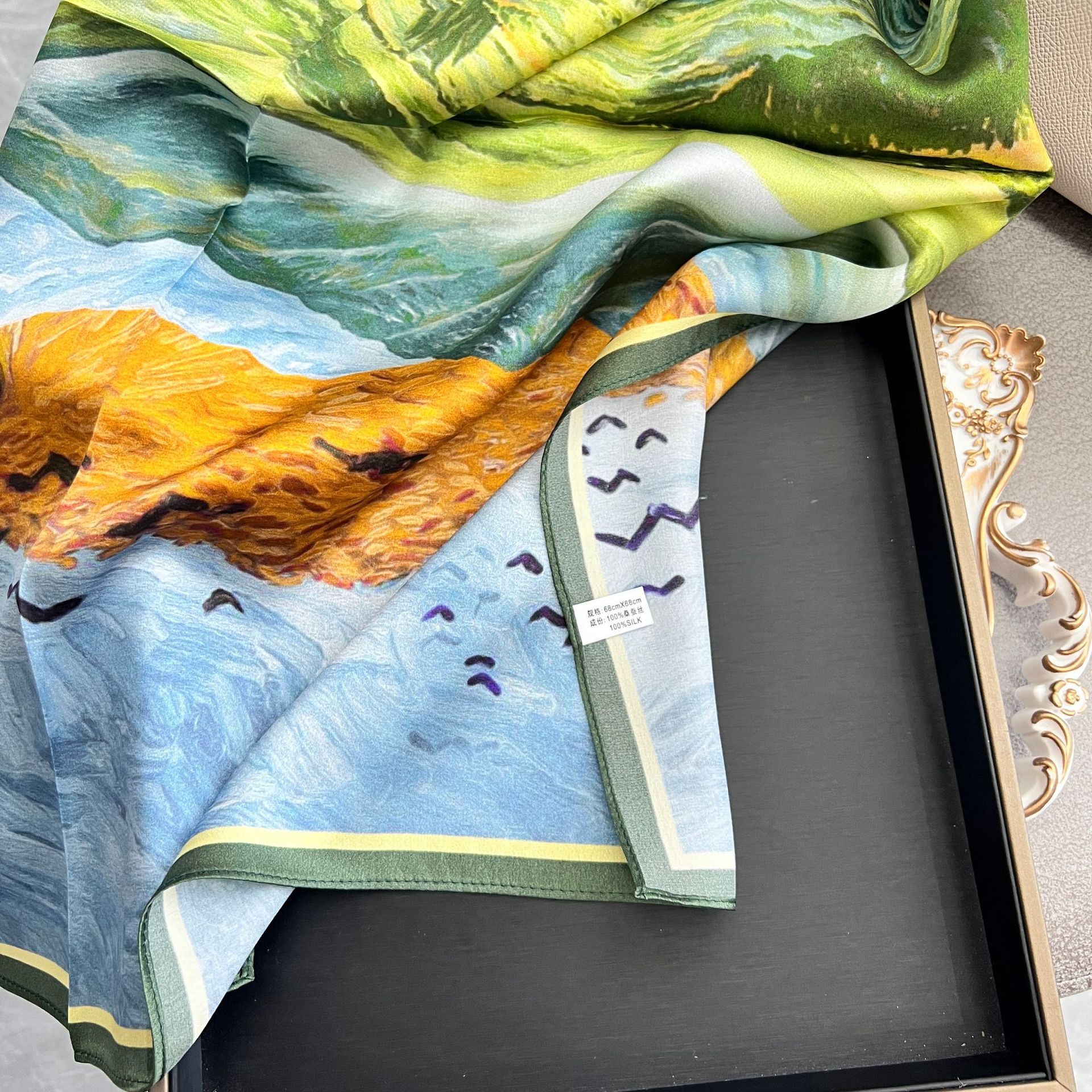 봄에 새로운! 항저우 실크 실크 스카프 여성용 한국식 올매치 70cm 스퀘어 스카프 장식 뽕나무 실크 스카프