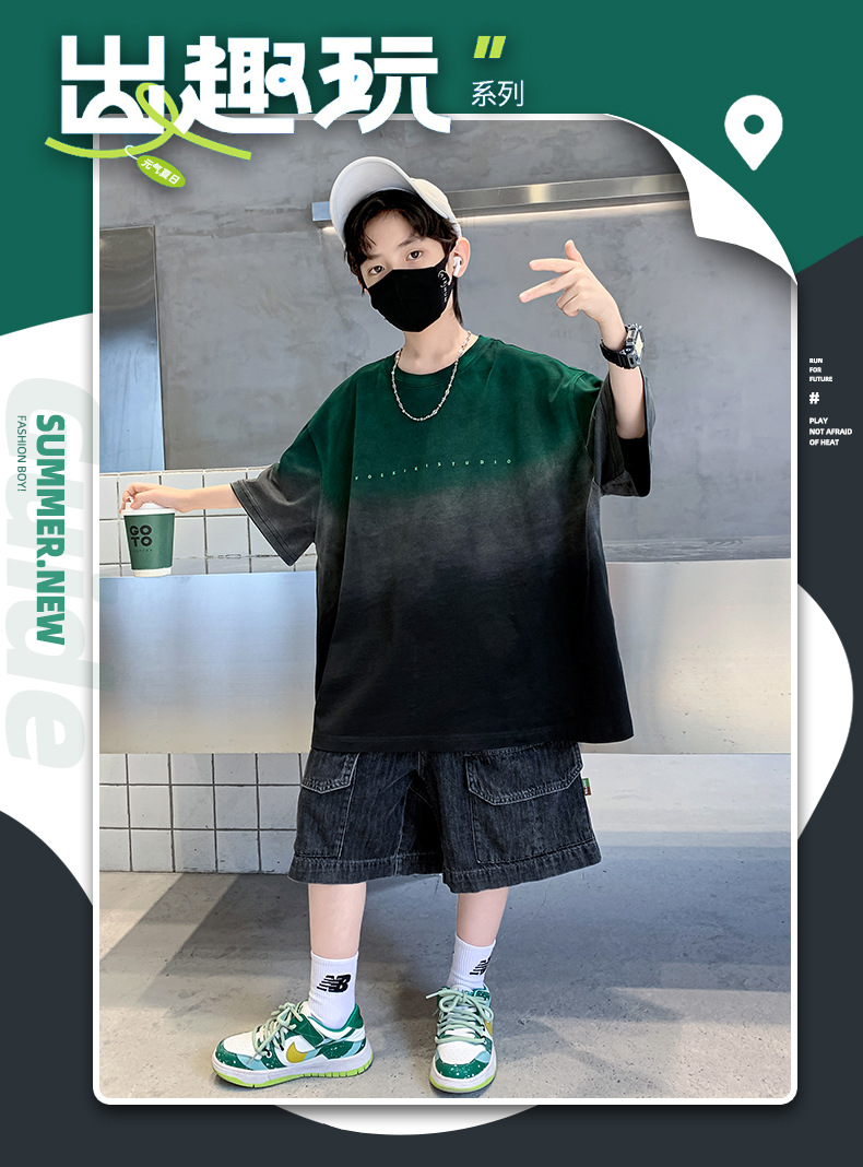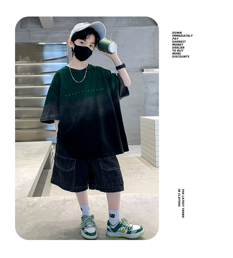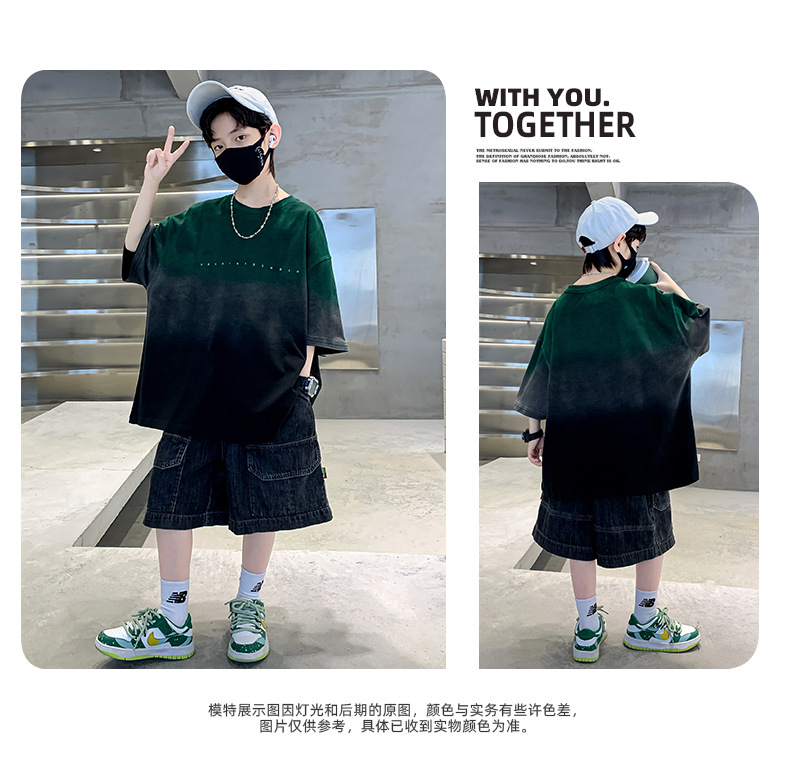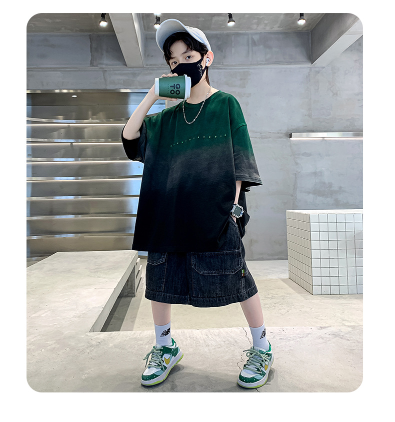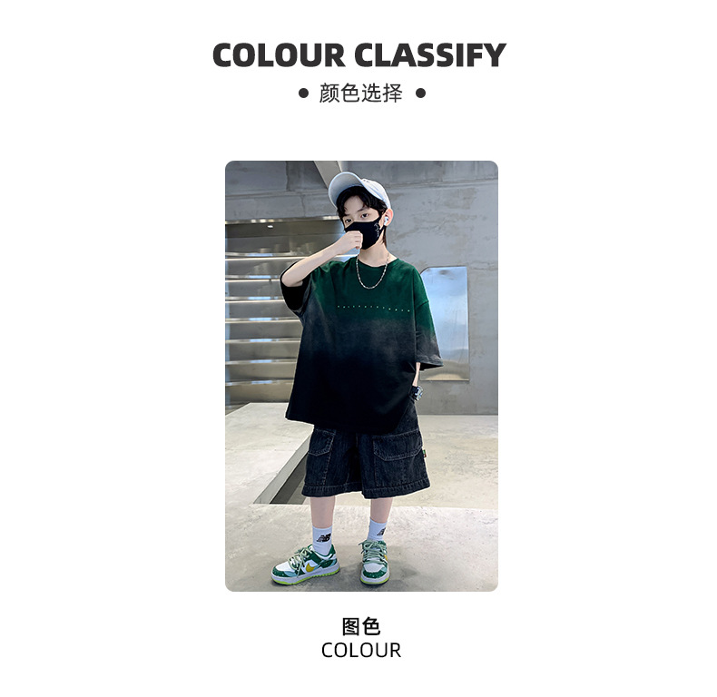 남아 그라데이션 컬러 슈트 반팔 여름 스타일 2026 신상 큰아이용 세련된 데님 반바지 투피스 세트 아동복스토어 가기
