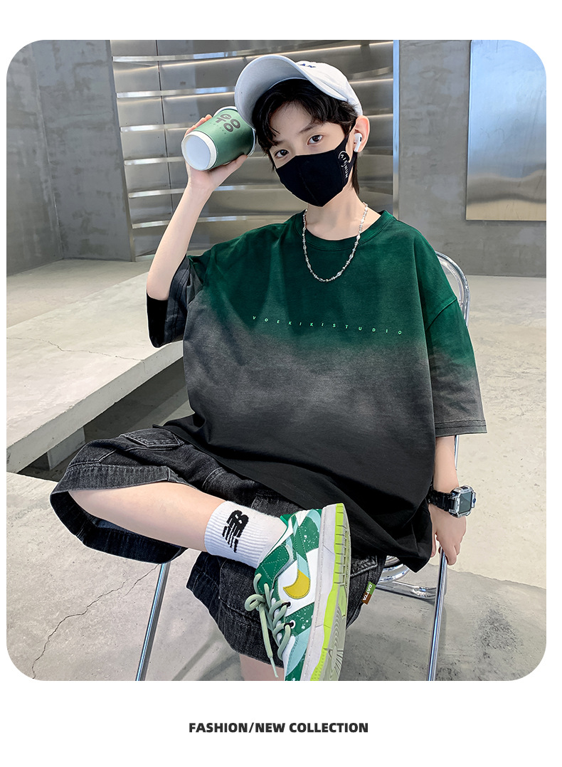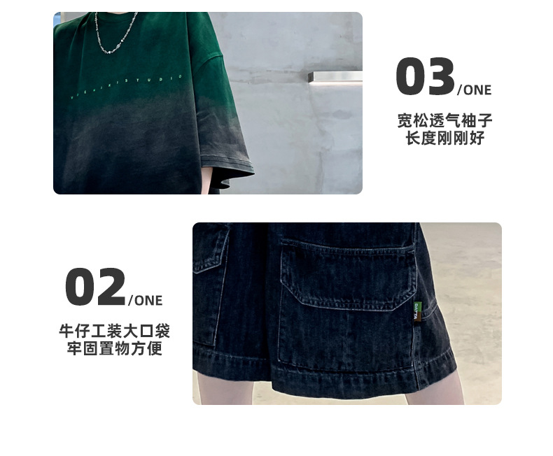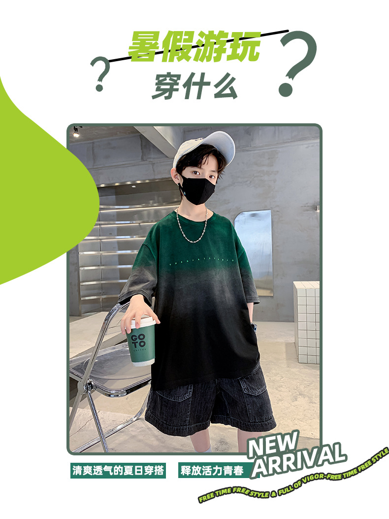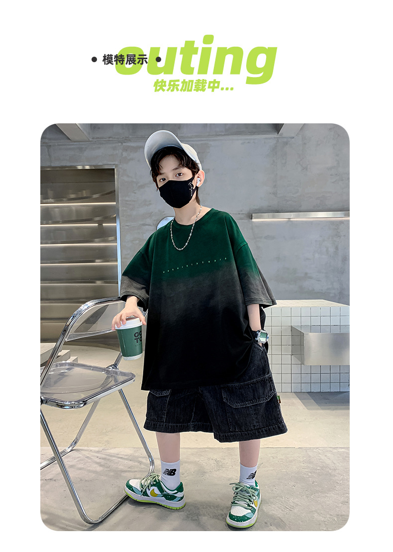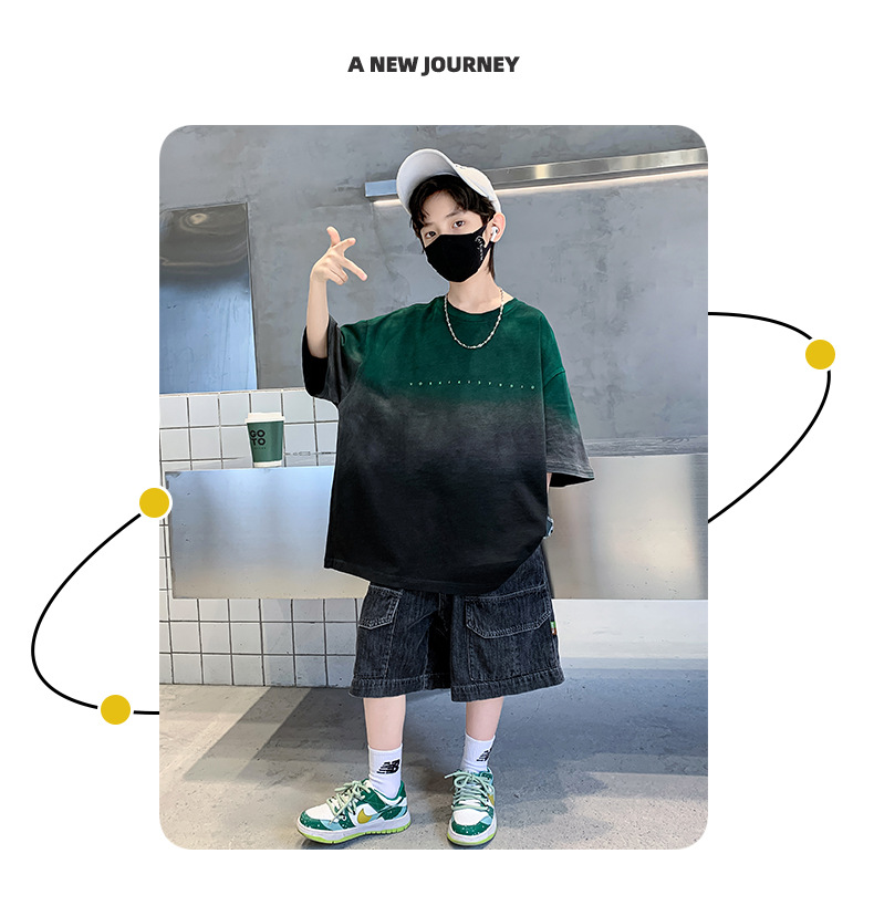 남아 그라데이션 컬러 슈트 반팔 여름 스타일 2026 신상 큰아이용 세련된 데님 반바지 투피스 세트 아동복스토어 가기