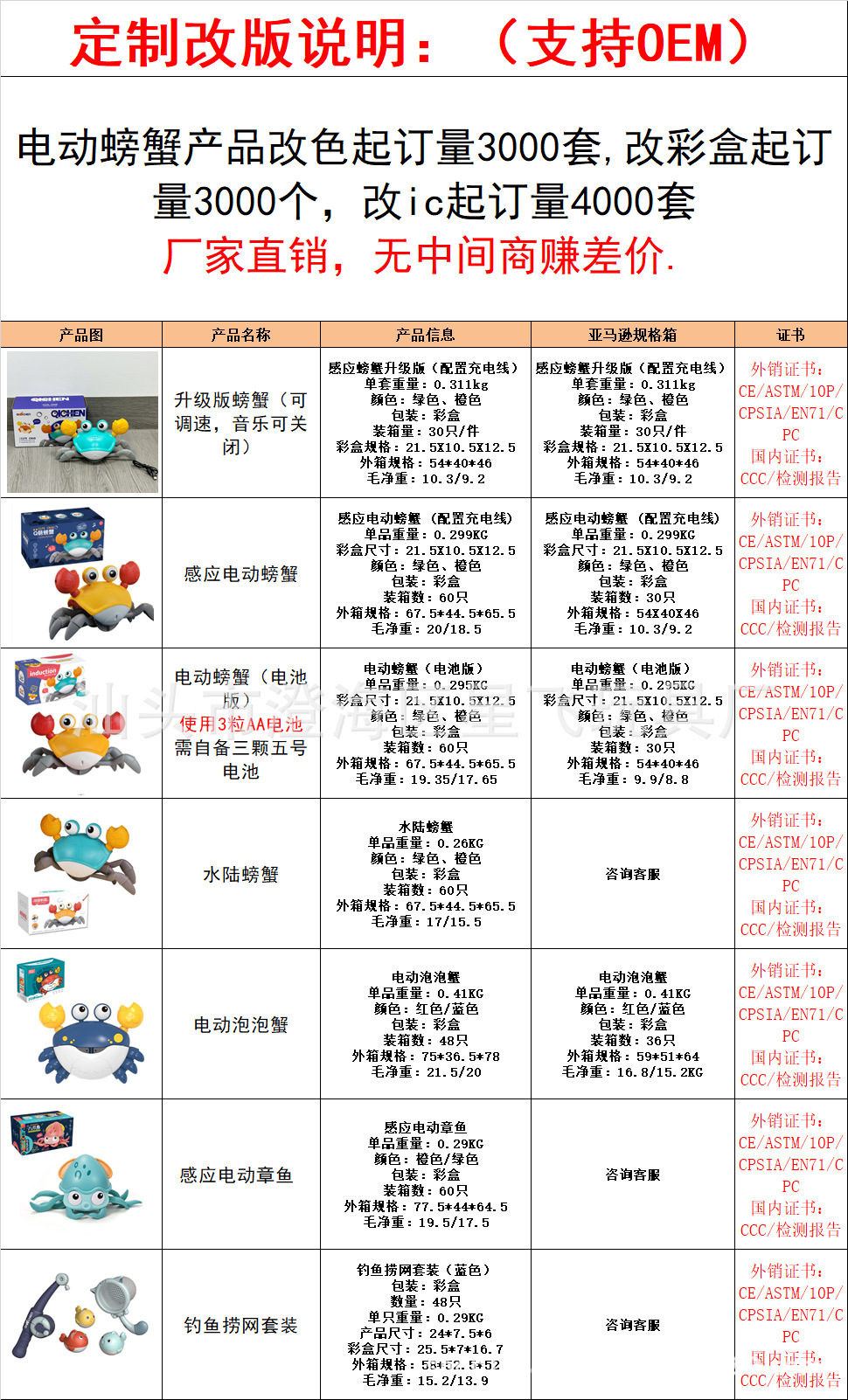 源头工厂,本厂有国内,美国,欧盟,英国专利!可到厂验货! 螃蟹有质检人员检查~
