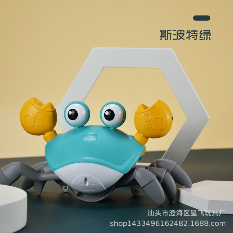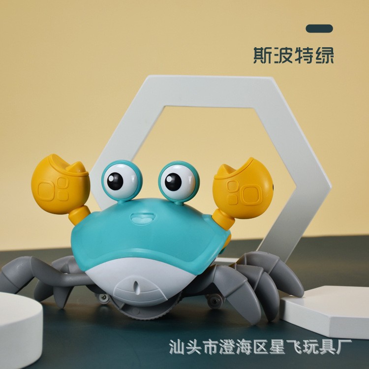 1、 升级版充电双感应螃蟹有音效眼睛有灯光,三档调速,可关闭音量。(一首音乐)