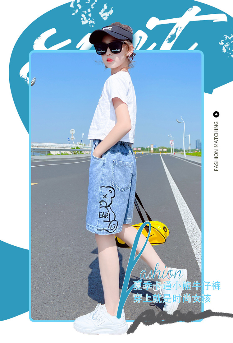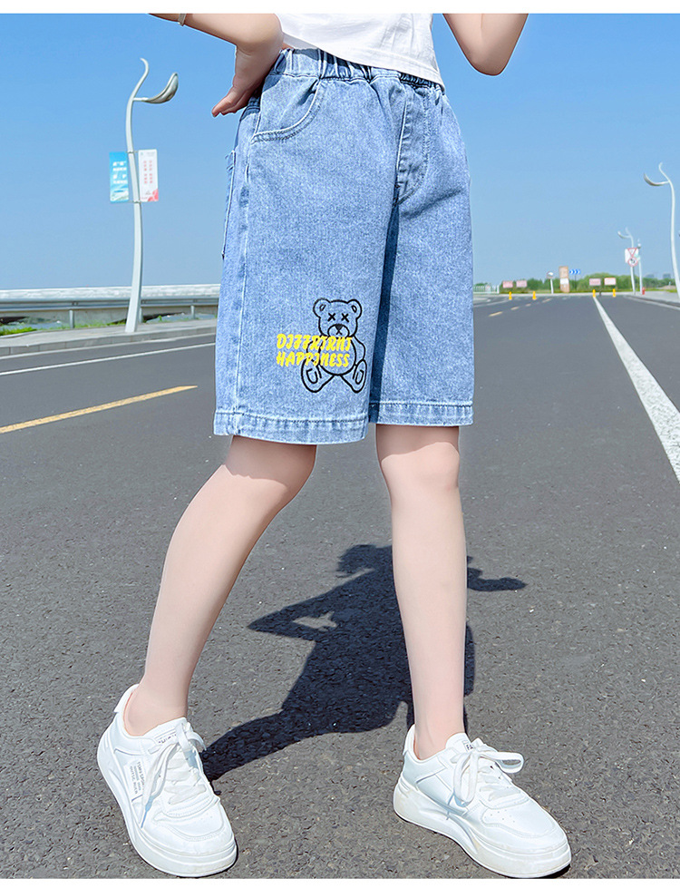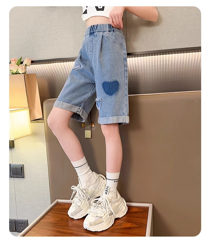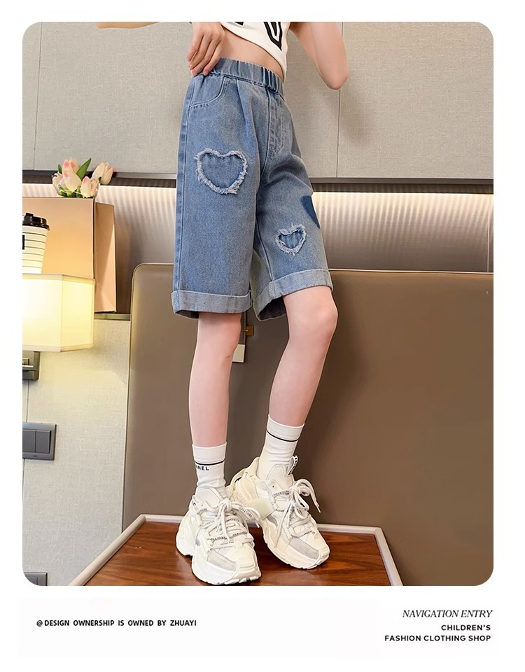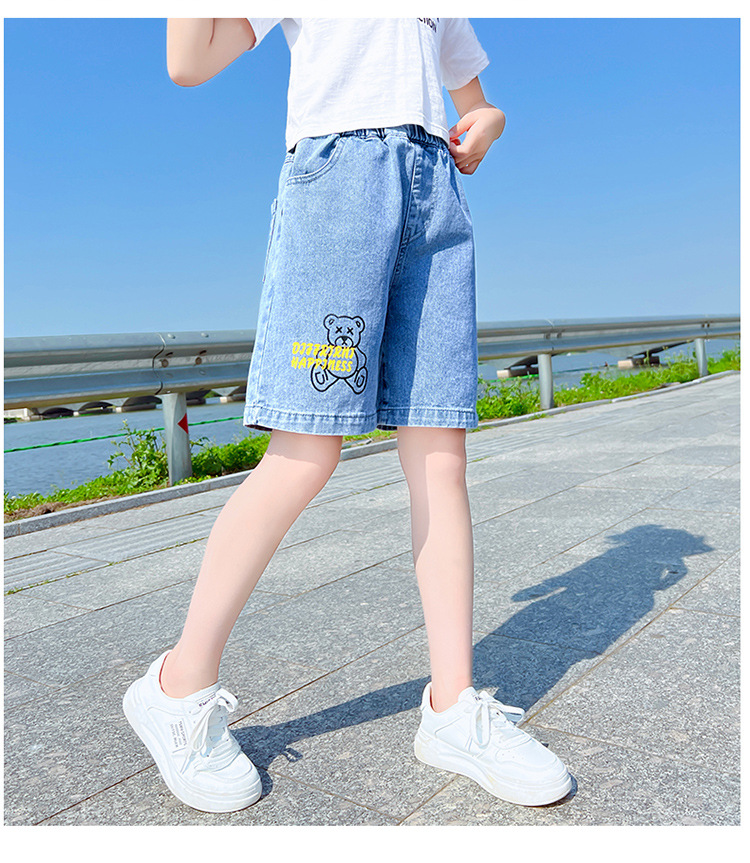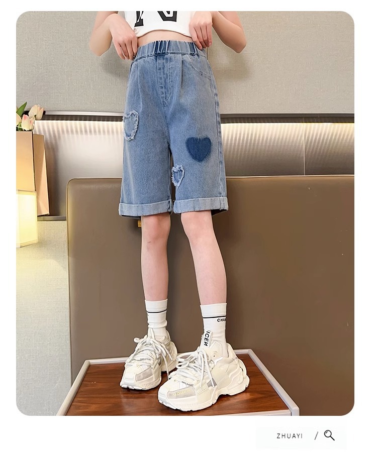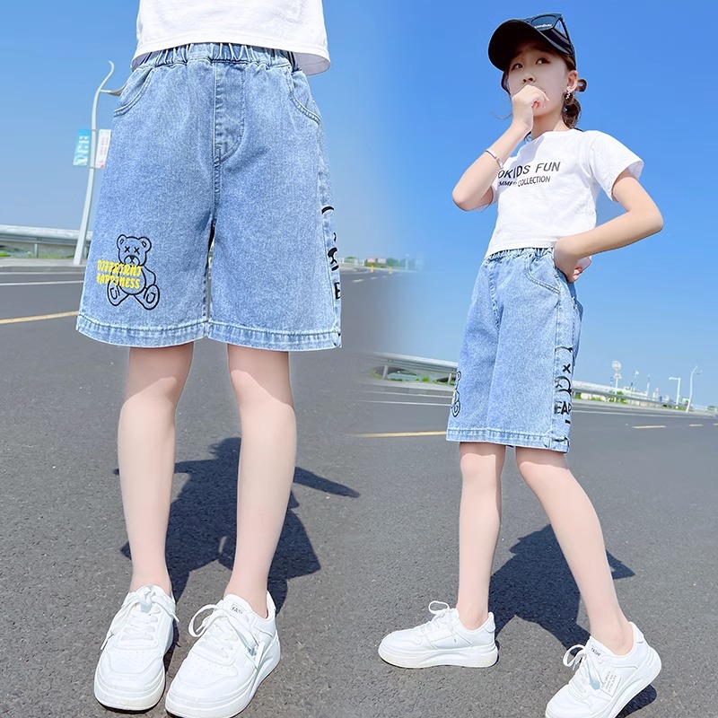여아 데님 중간 길이 바지 2023 신상 여름 착용 모든 매치 크고 작은 아동 캐주얼 5,6 바지 리틀 여아 반바지