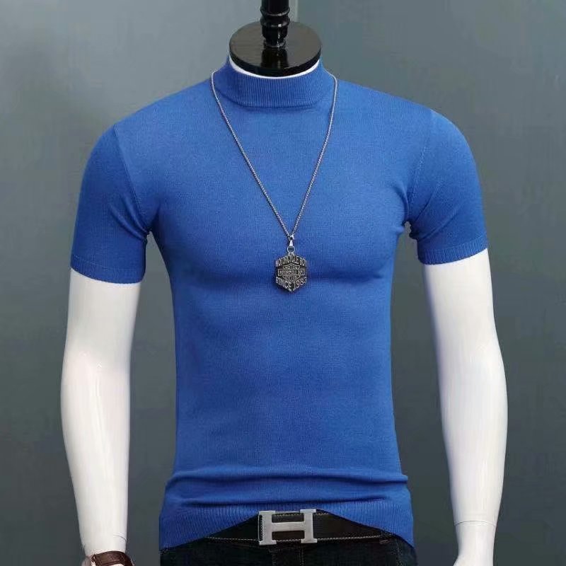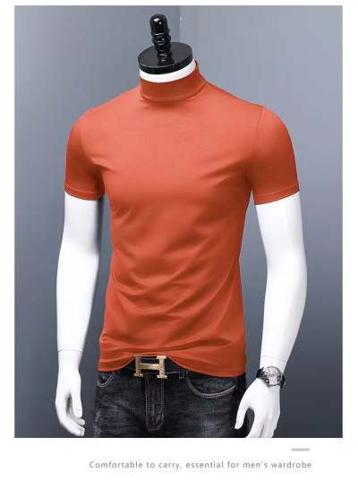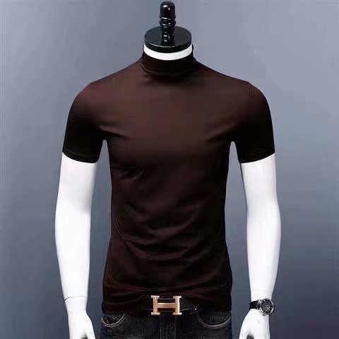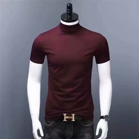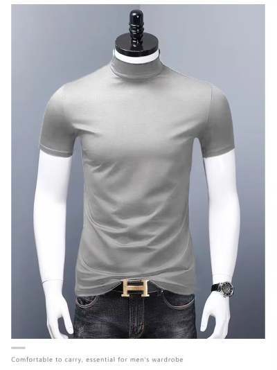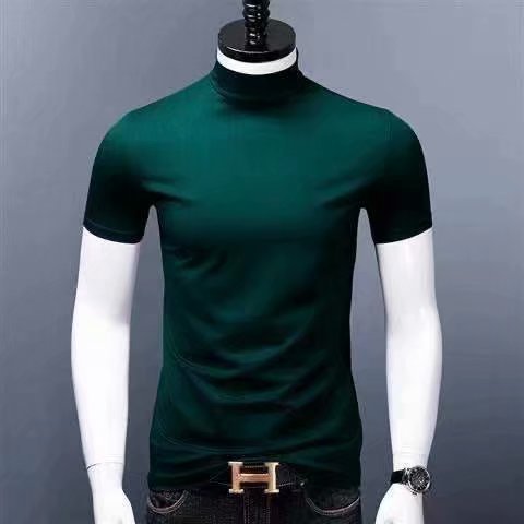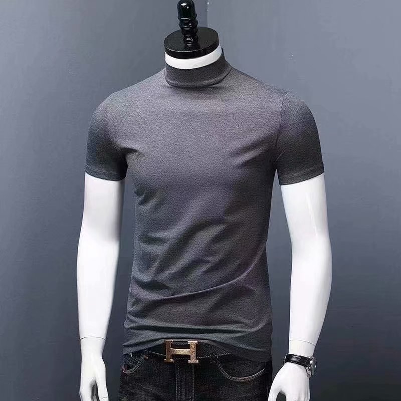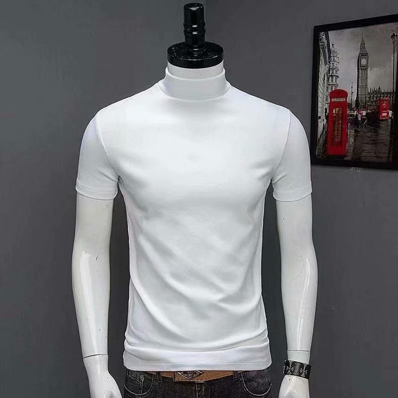 남성용 하이 칼라 반팔 티셔츠 실크 면 얇은 여름 남성용 핏 슬림핏 내부 트렌디 미드 칼라 베이스 셔츠스토어 가기