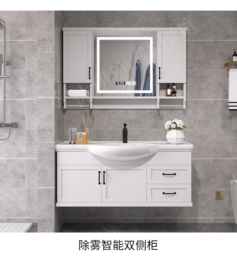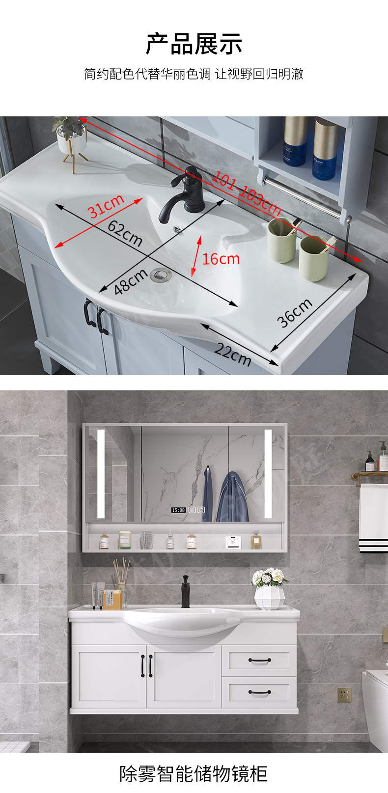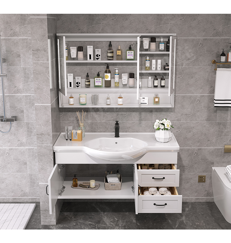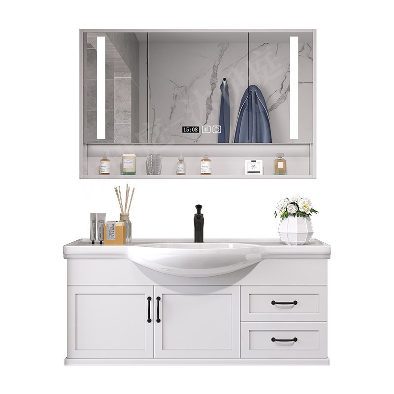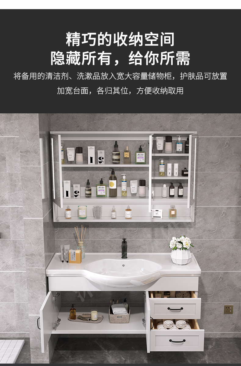 현대 단단한 나무 욕실 캐비닛 스마트 거울 화장실 세면기 캐비닛 조합 간단한 욕실 세면기 캐비닛스토어 가기