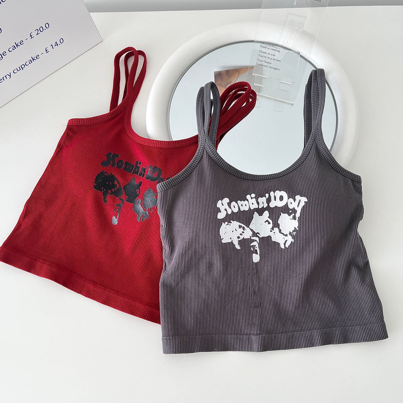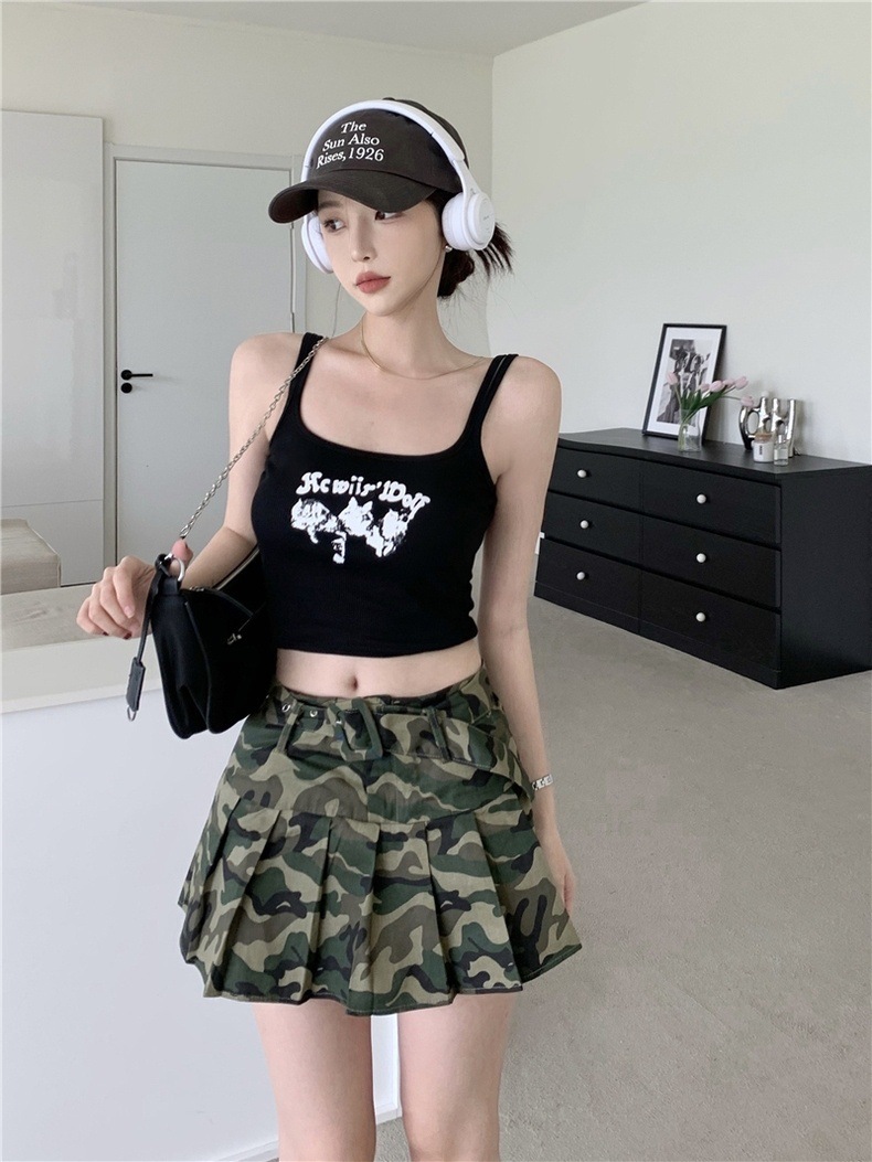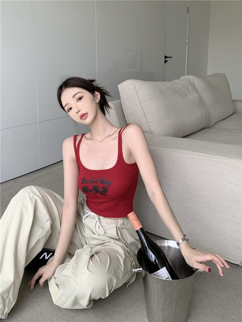 새로운 스파이스 걸스 레드 프린트 캐미솔 여성용 여름 스포츠 스타일 슬림핏 쇼트 탑 트렌디 아우터