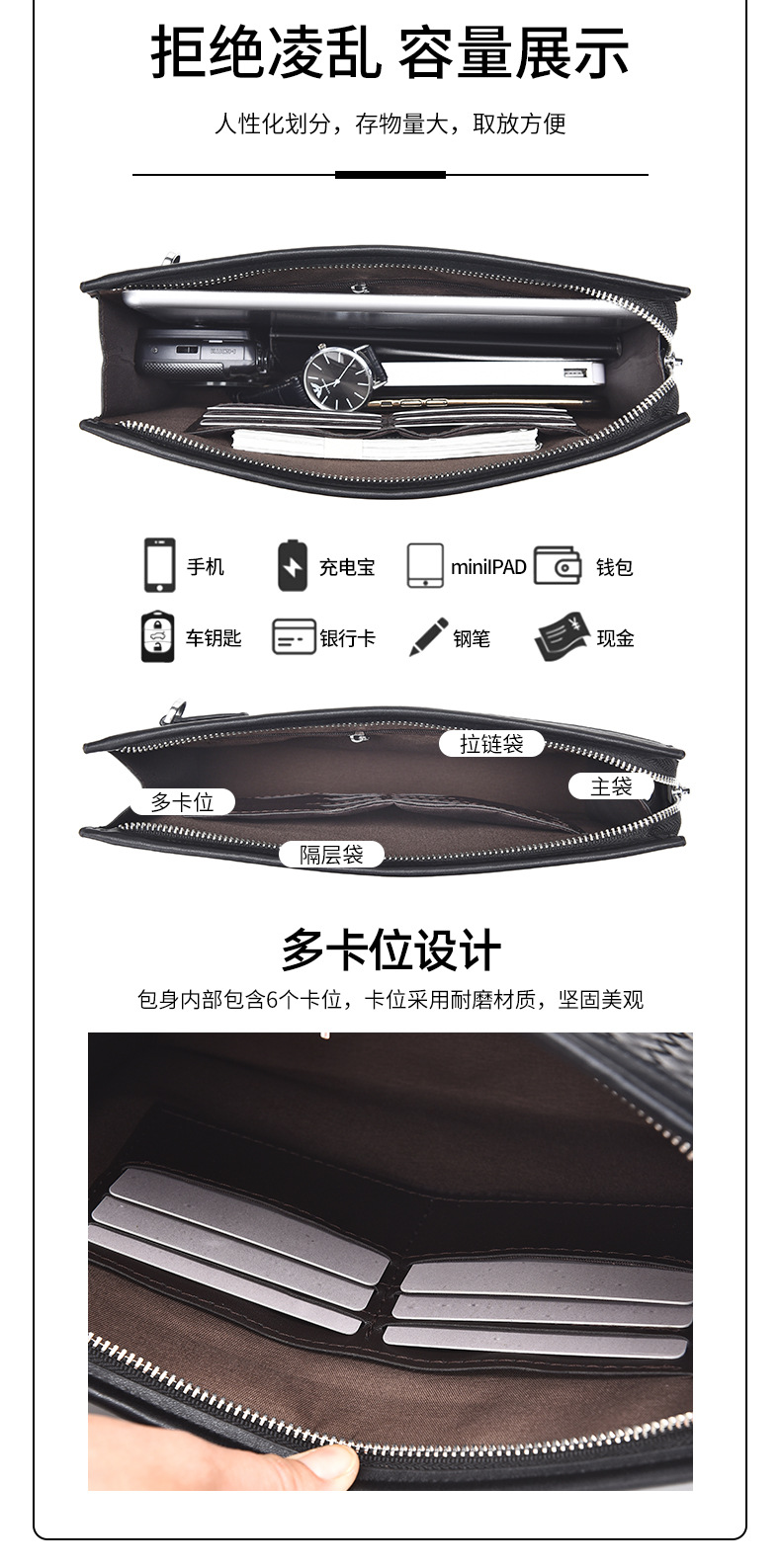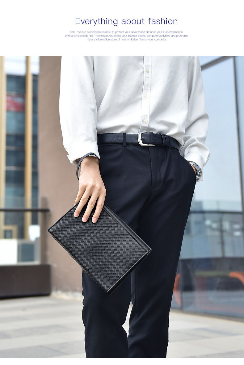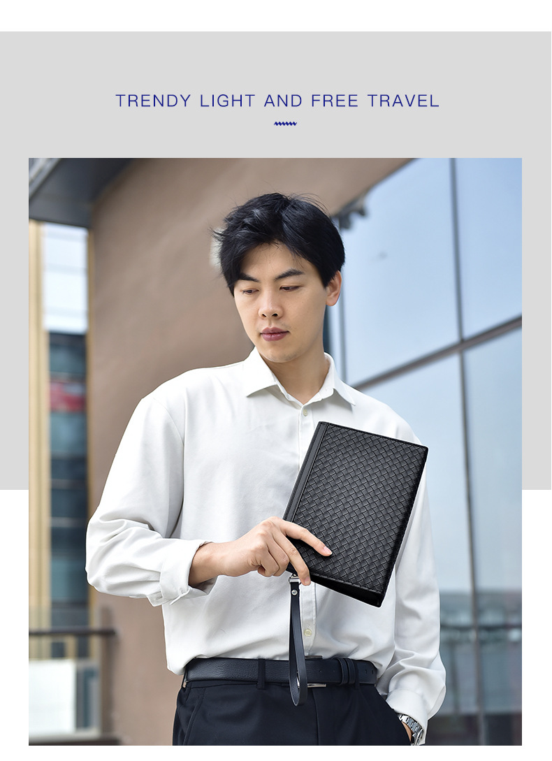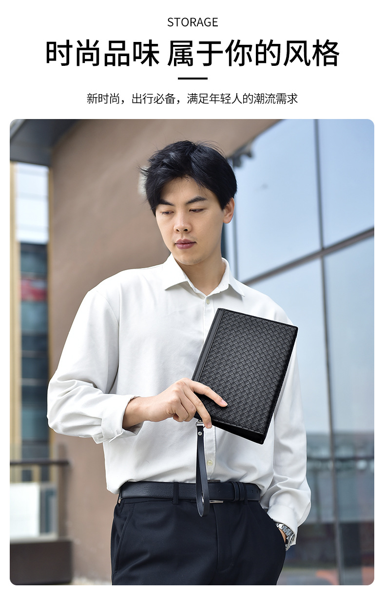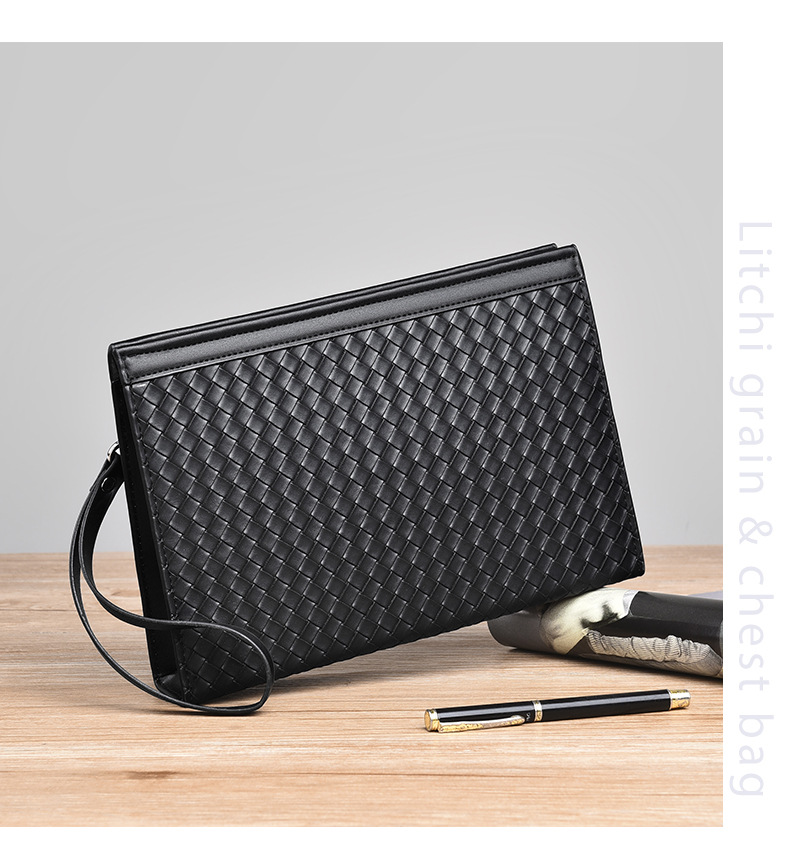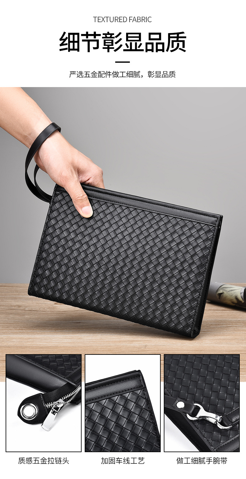 패셔너블한 남성용 클러치백, 대용량 겨드랑이 가방, 비즈니스 출퇴근 및 캐주얼용 직조 패턴 남성용 클러치백스토어 가기