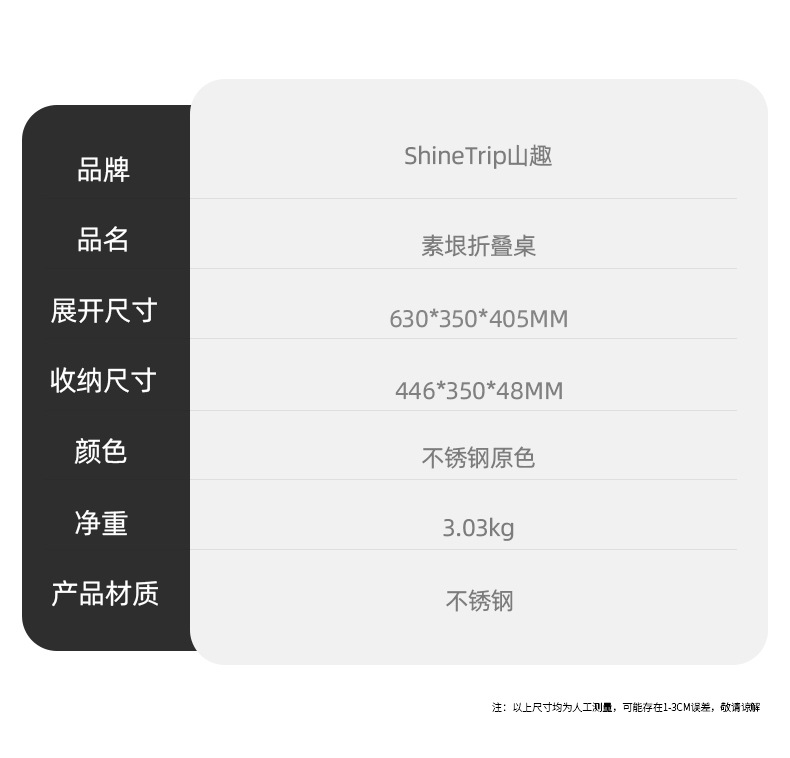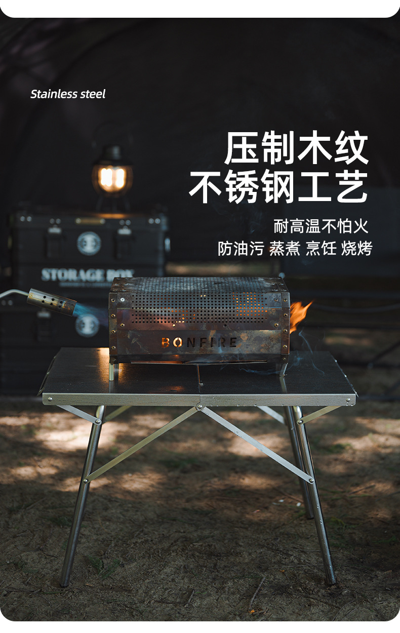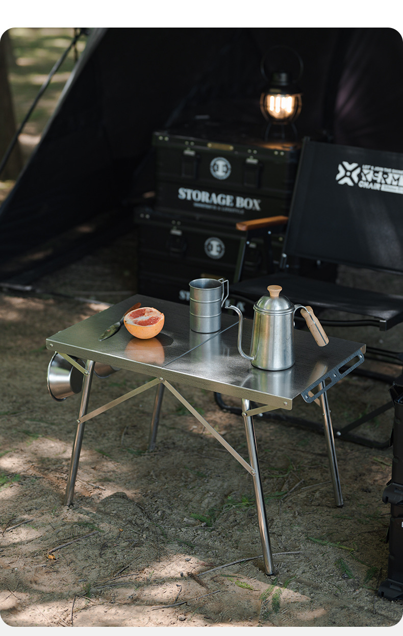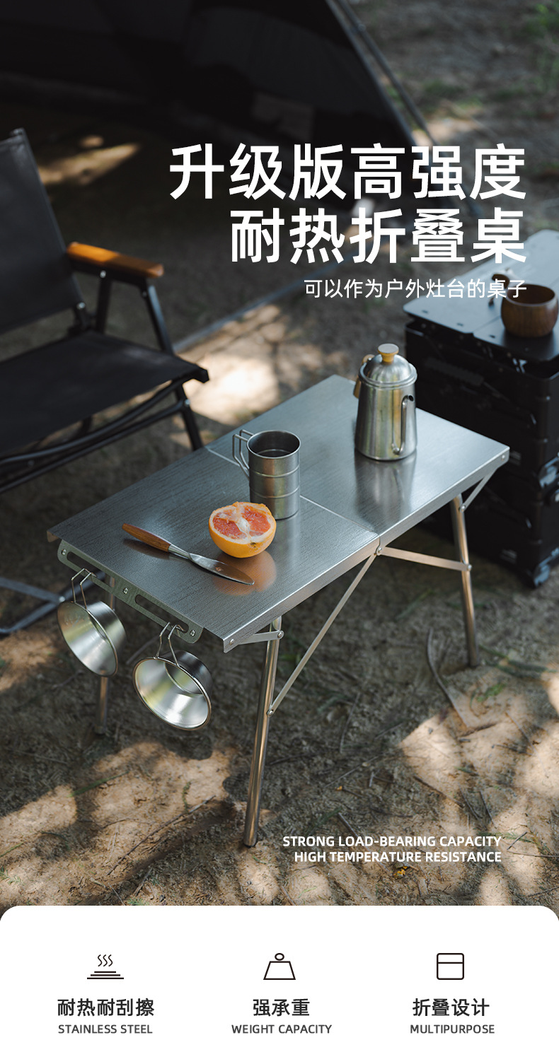 Shanqu 야외 캠핑 접이식 테이블 휴대용 스테인레스 스틸 피크닉 테이블 캠핑 캐주얼 바베큐 고온 저항 캠핑 테이블