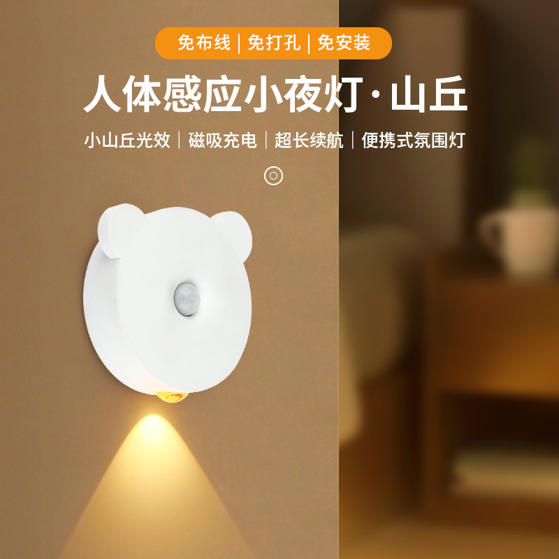 국경을 넘는 스마트 LED 충전식 인체 센서 램프 침대 옆 침실 USB 자기 흡착 벽 문 표지판 야간 조명 스마트 센서