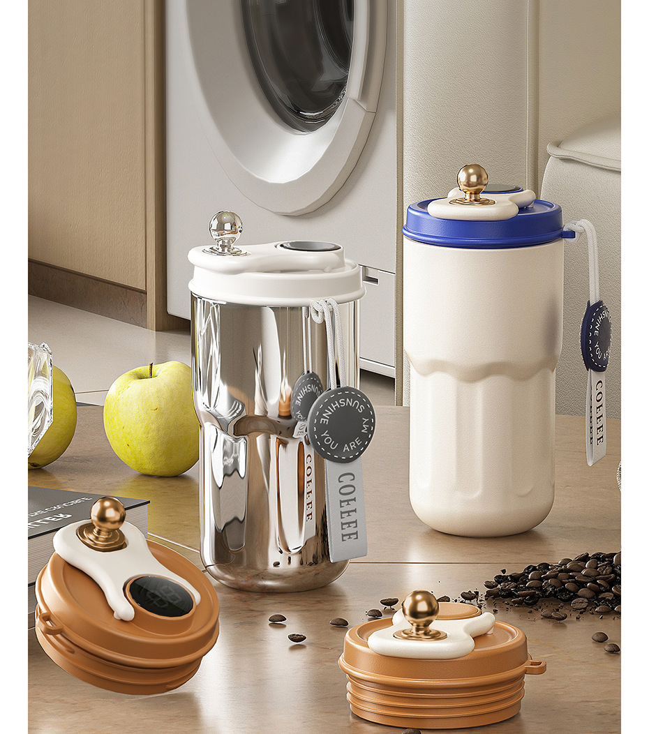 새로운 지능형 사무실 스테인레스 스틸 커피 보온병 컵 316 하이 컬러 값 남녀 학생 휴대용 물 컵 자동차 컵스토어 가기