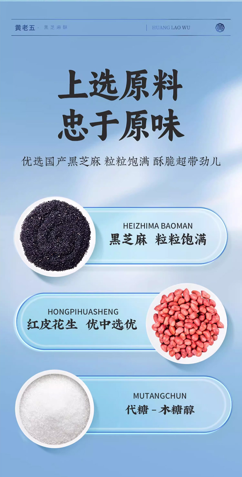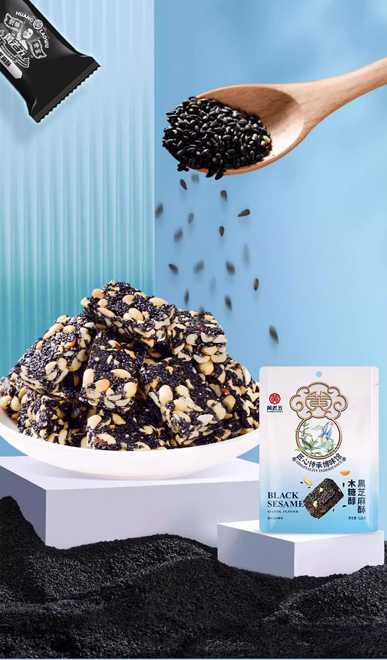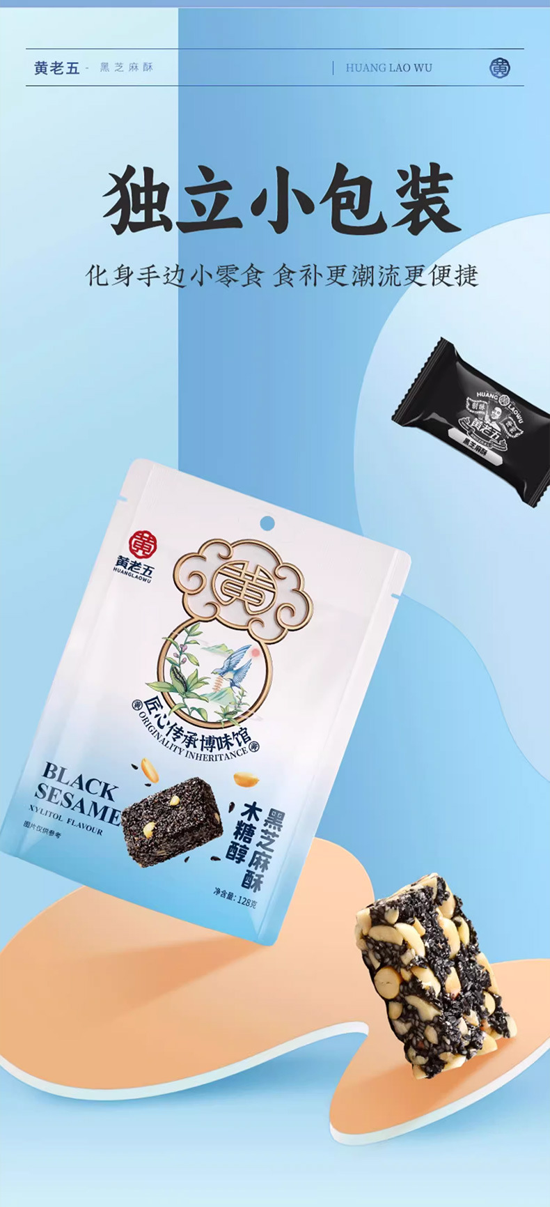 황라오우 자일리톨 흑임자 과자 사천 특산 전통 과자 건강 간식 도매 128g