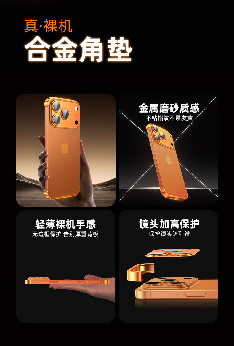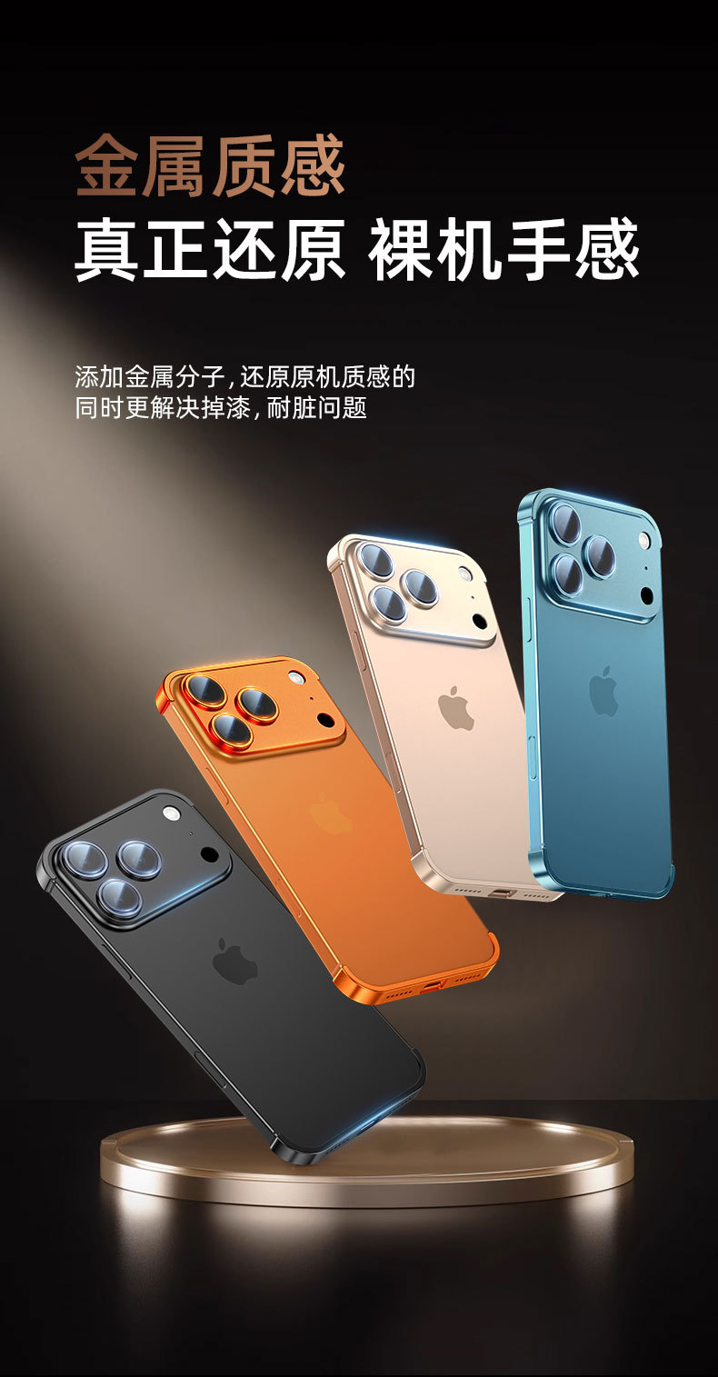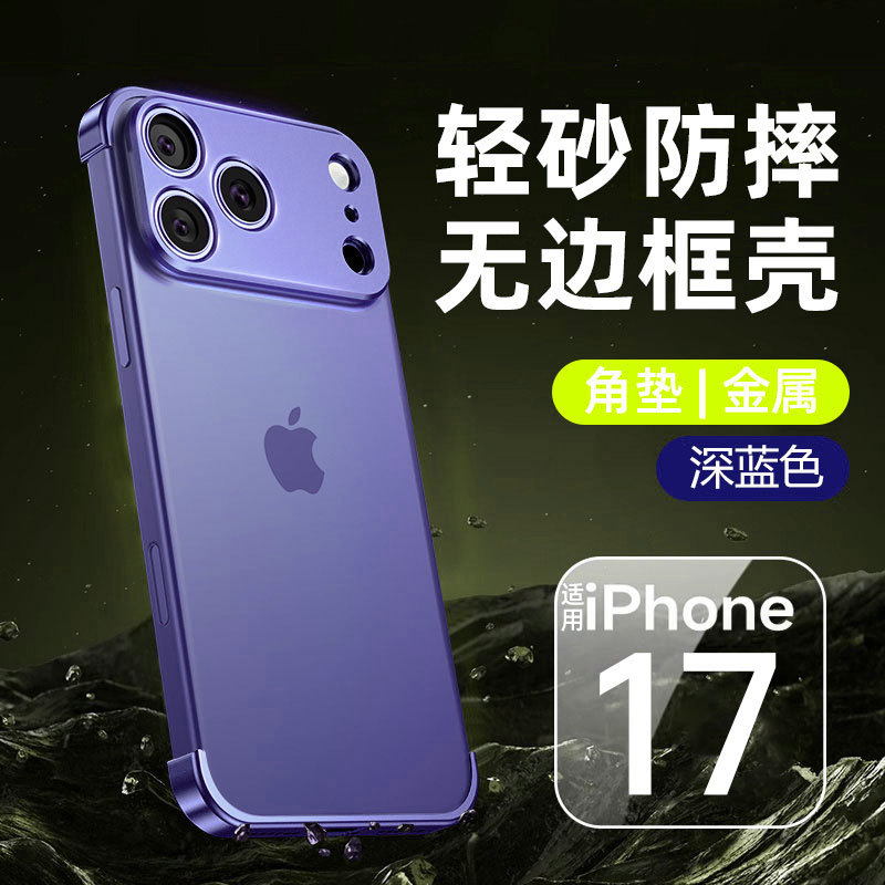 Apple 17 휴대폰 케이스, 금속 코너 패드, iPhone 16 낙하 방지, 프레임리스 낙하 방지 보호 커버, 최신 유행에 적합한 공장