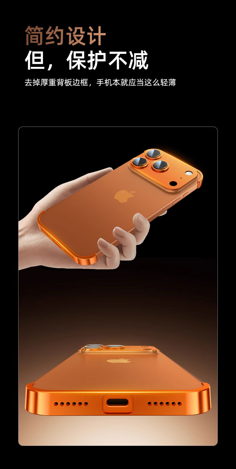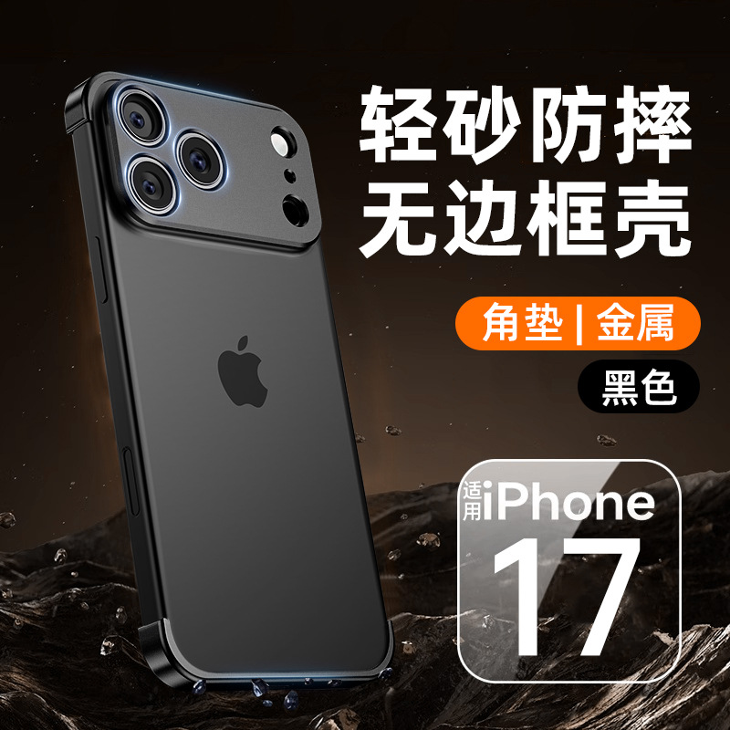 Apple 17 휴대폰 케이스, 금속 코너 패드, iPhone 16 낙하 방지, 프레임리스 낙하 방지 보호 커버, 최신 유행에 적합한 공장스토어 가기