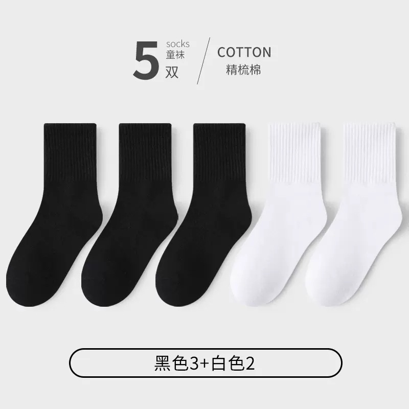 5 쌍 어린이 양말 봄과 가을 면 흰색 학생 양말 소년 여성을위한 가을과 겨울 순백색 대학 스타일 양말스토어 가기