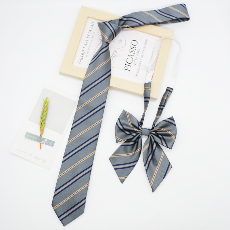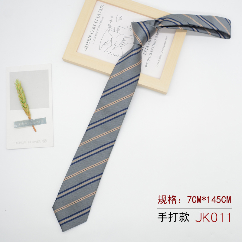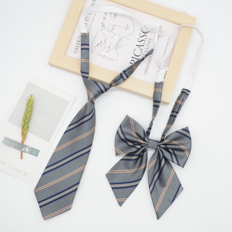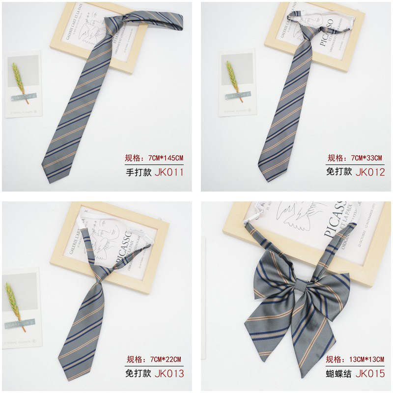 JK Tie 여성용 한국식 일본식 대학 스타일 그레이 스트라이프 핸드 투 핸드 유니폼 매듭없는 짧은 학생 패션 유니폼스토어 가기